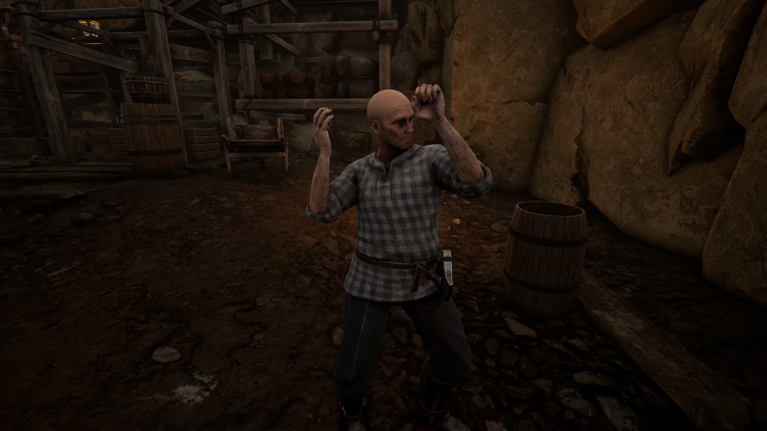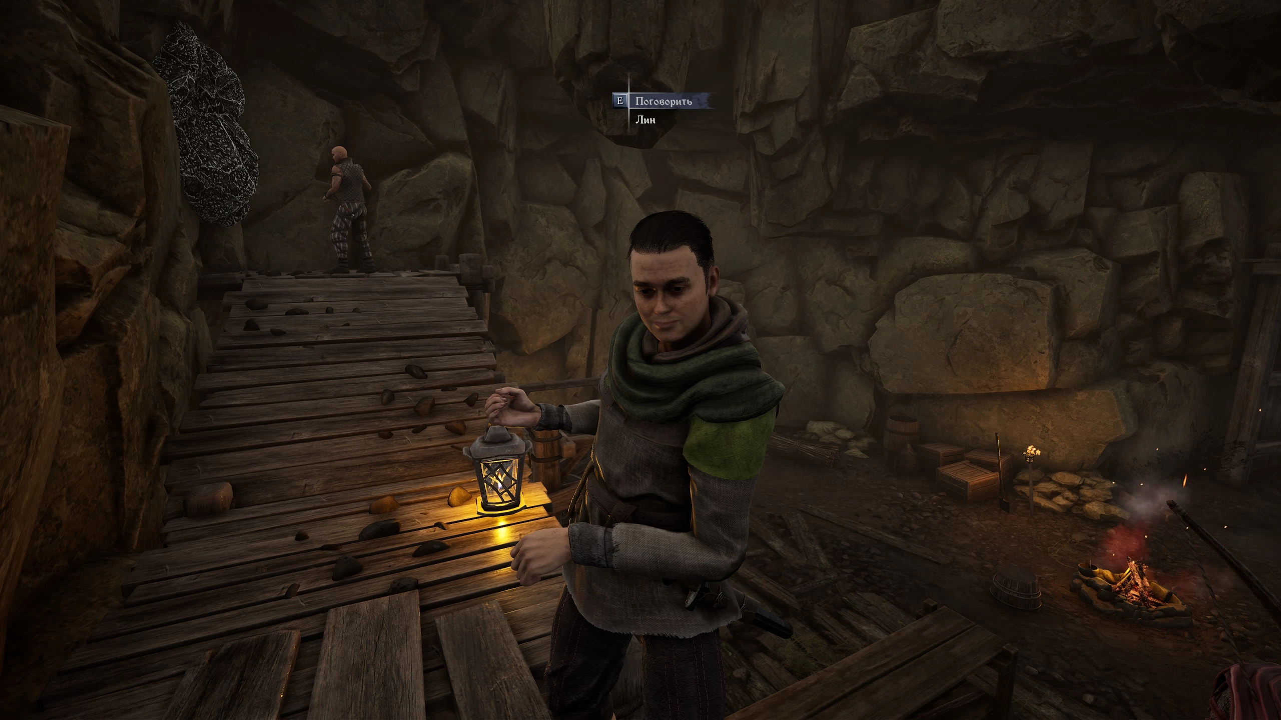 Лысый шахтёр в клетчатой жилетке обычно стоит у костра в самой нижней штольне. Бывший гладиатор может дать пять кусков.