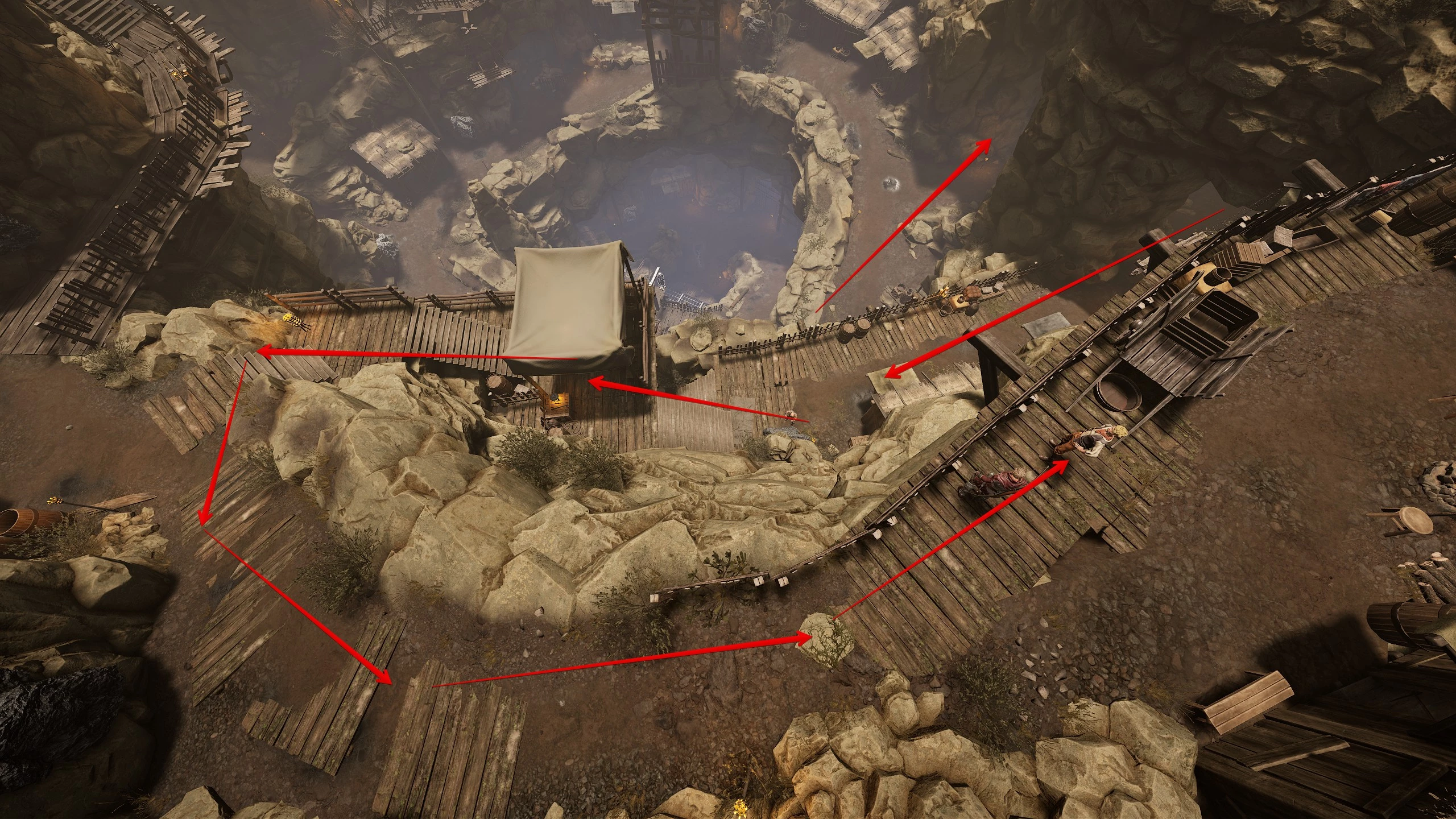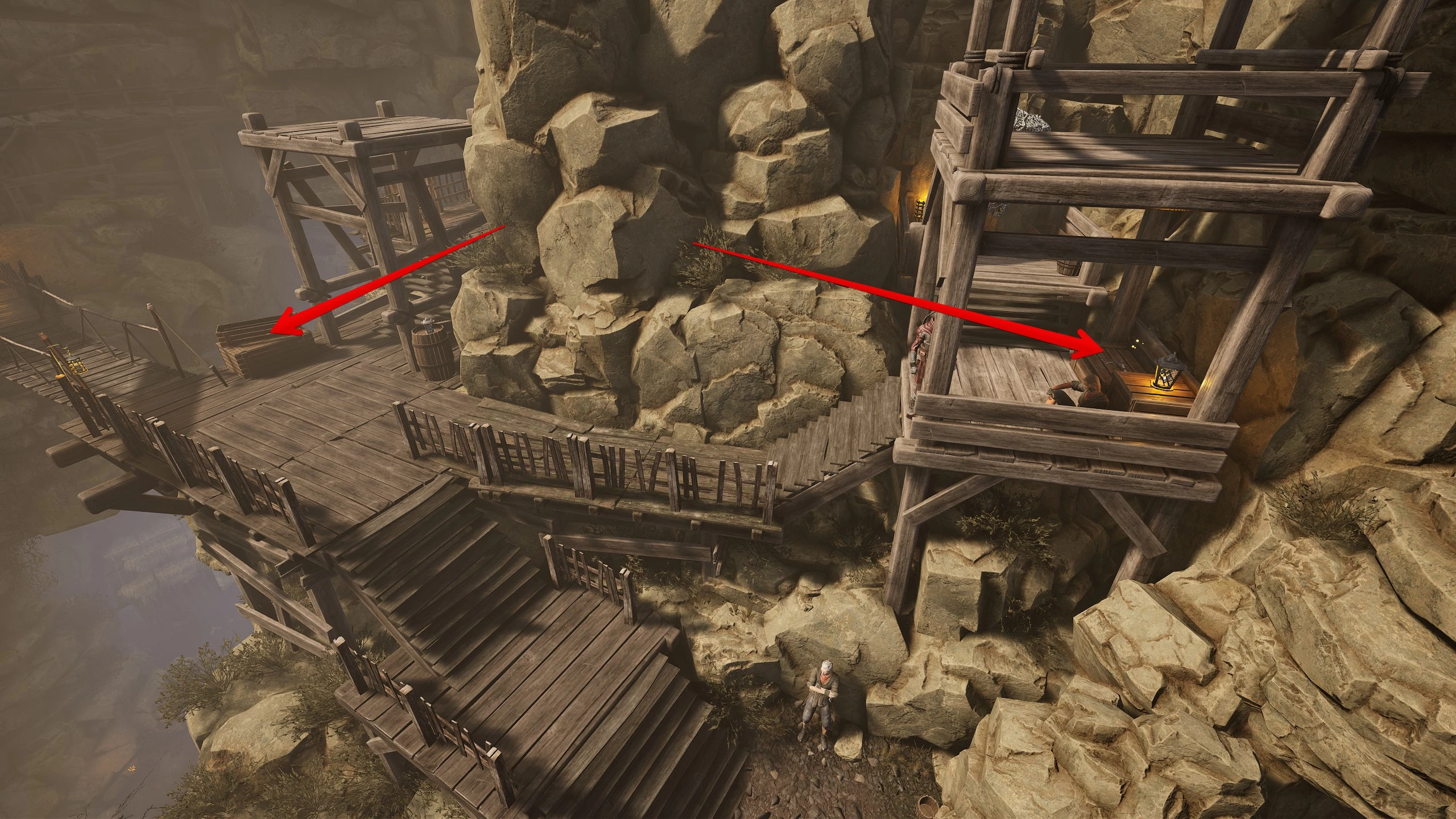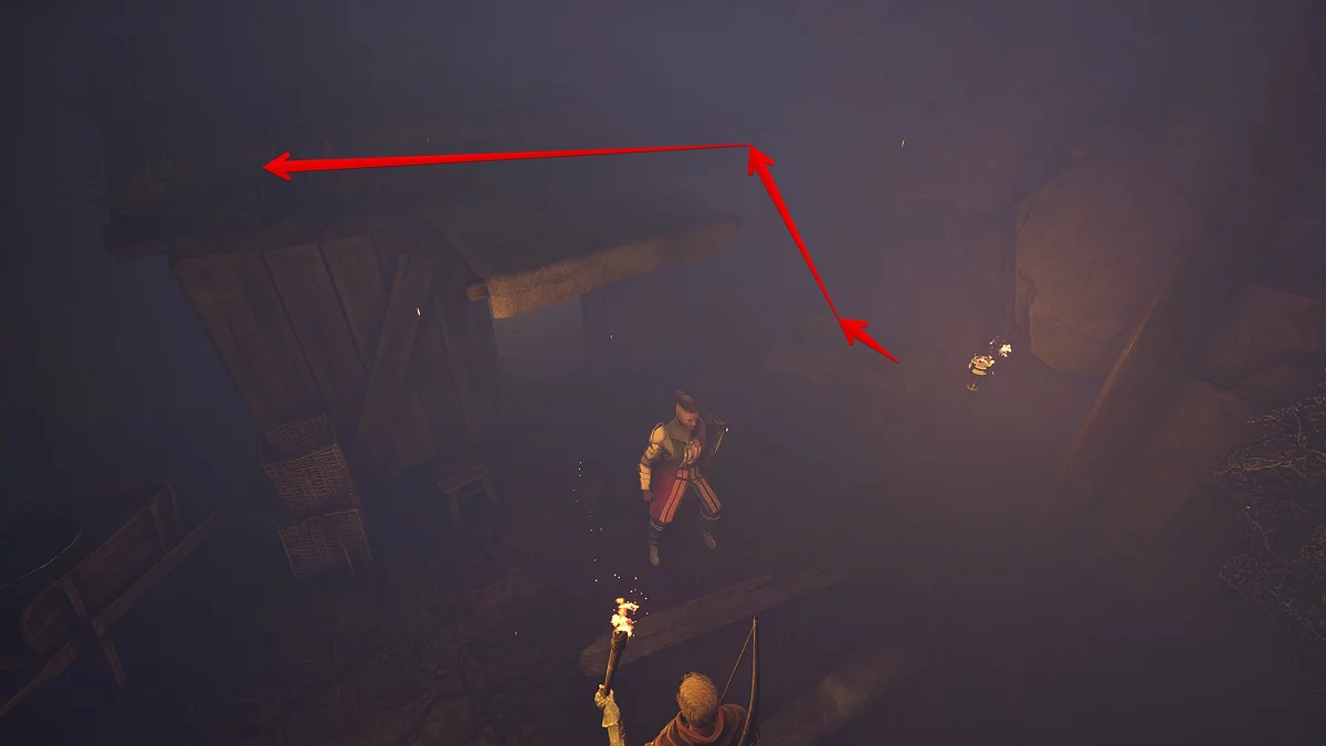 Если вы уже устранили предателя, поговорите с Анхелем, а затем с Ботропсом. Теперь нужно принести три связки с оружием. Первые две на самом верхнем ярусе над избой Хогана, последняя в конце пещеры с жуками.
