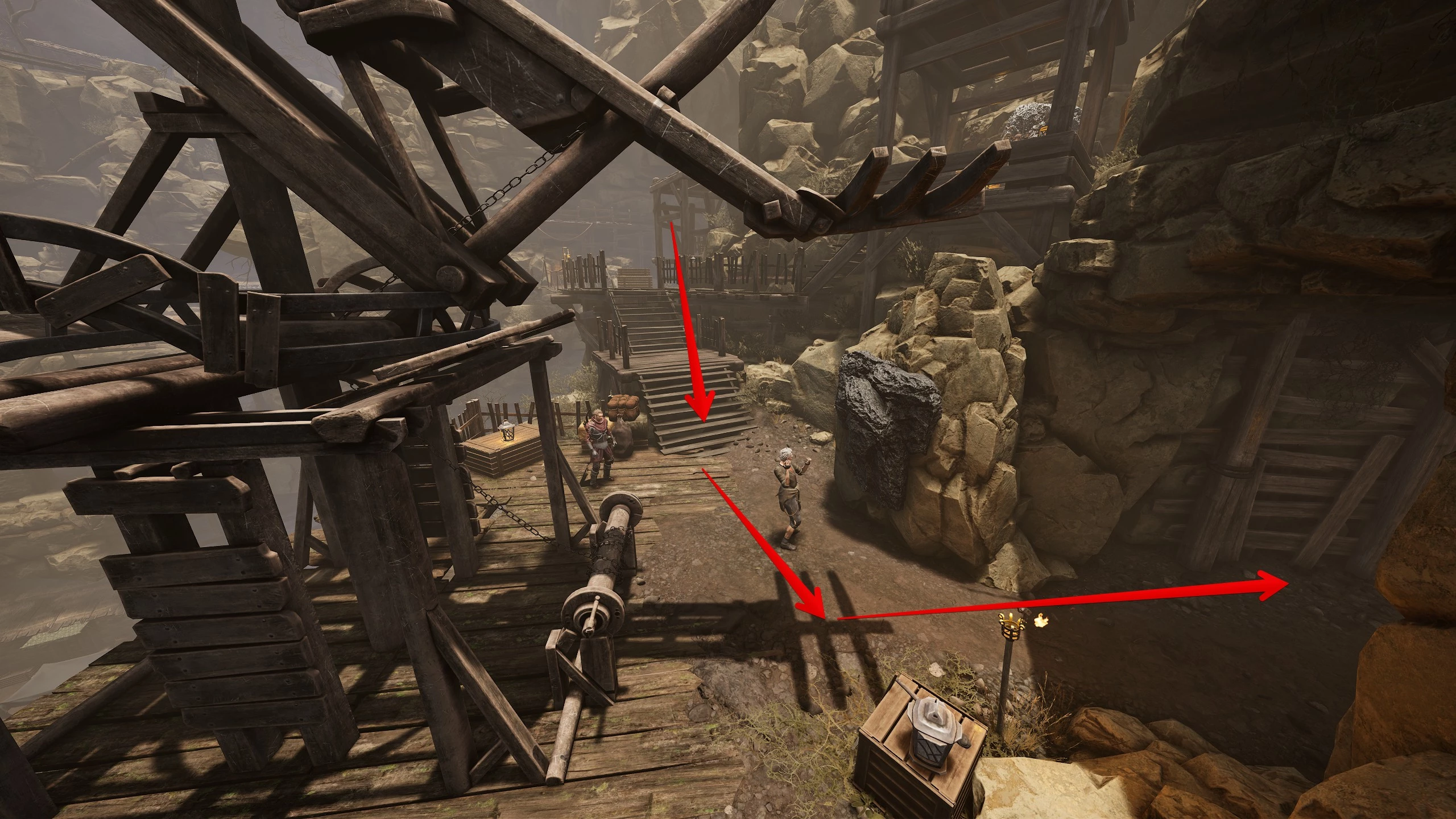 Как только вы перешагнёте порог шахты, запустится цепочка квестов, и, пока вы их не завершите, покинуть рудники не получится. Поэтому сперва рекомендуем повысить уровень Тристана хотя бы до 20-го уровня, чтобы избежать сложностей, и создать отдельное сохранение. Также обязательно возьмите с собой много еды, не менее 40 бутылок воды и, если позволяют финансы, купите или добудьте как можно больше железной руды.