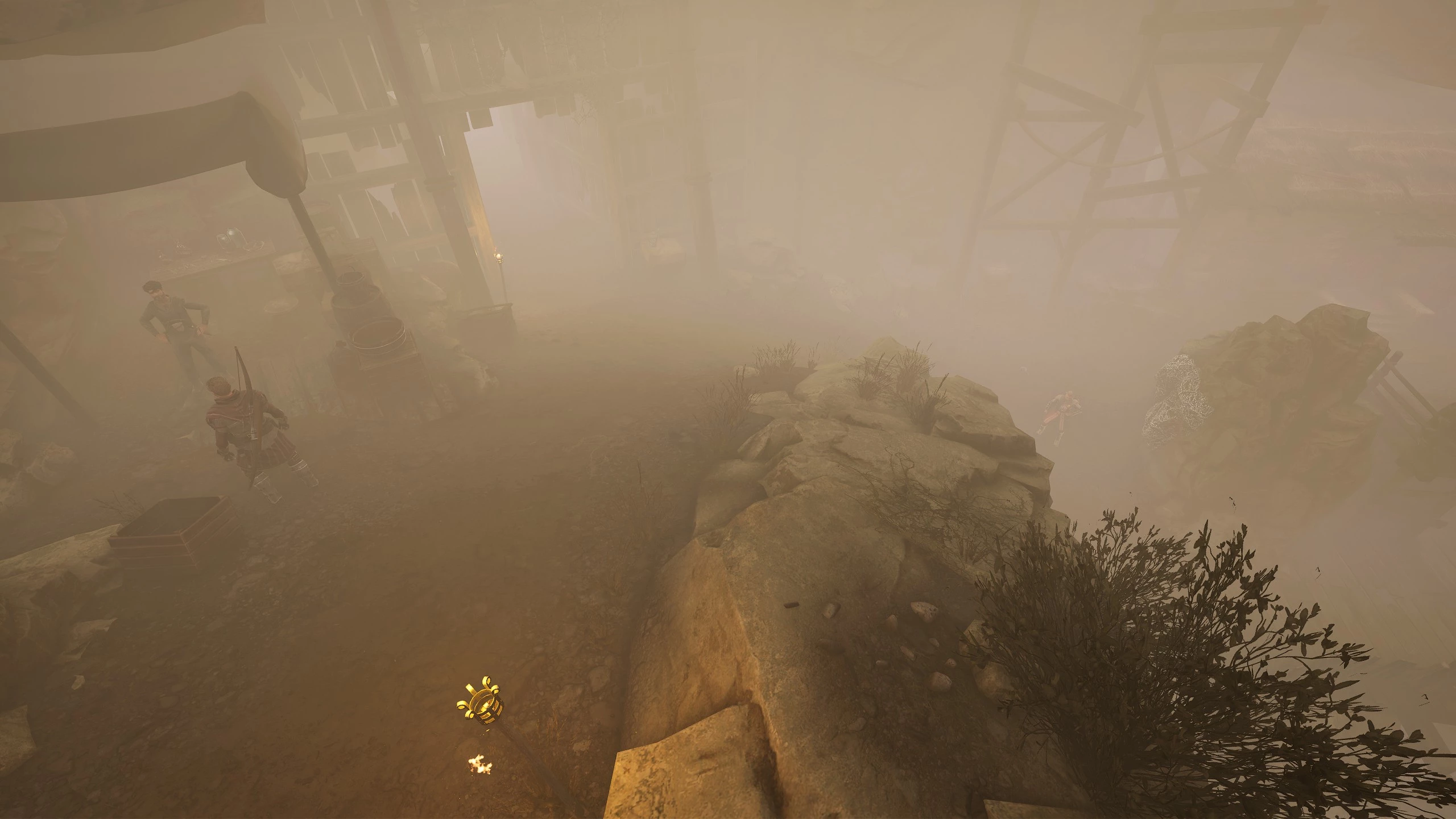 Теперь двигайтесь по тропинке на юг к руинам, населённым проклятыми мародёрами. Если уверены в своих силах, можете от них избавиться, в ином случае обойдите развалины незамеченными, чтобы попасть в пещеру, у которой нужно убить ассасина.