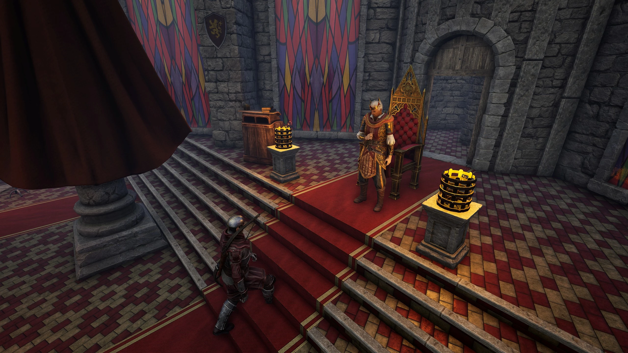 Отправляйтесь в Грейшафт и поднимитесь к воротам в верхний город. Далее постоянно двигайтесь наверх, пока не окажетесь в замке. После короткой кат-сцены следуйте за лордом Дарси. Поговорите с наместником о ситуации в шахтах, после чего он выдаст грамоту и попросит отправиться в рудники, чтобы провести расследование. В комнате слева от входа есть множество ценных предметов, например золотые слитки, возможно, это баг, но всё можно брать, так как не имеет статус «краденое».
