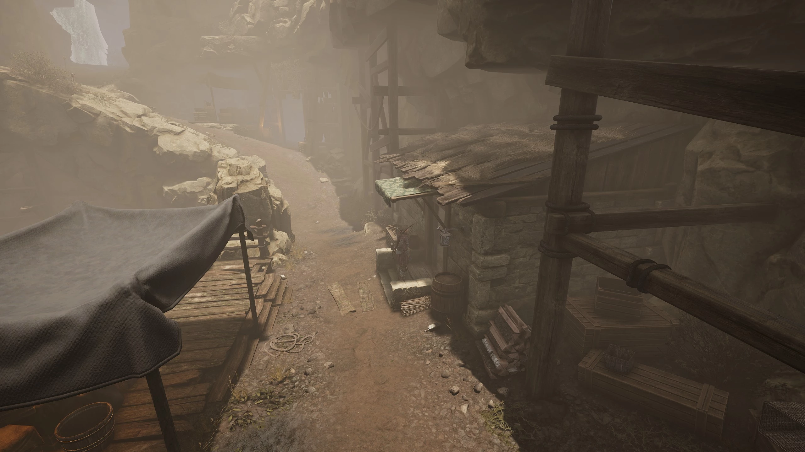 Сходите к повару и подберите с ящика у костра бумажку. Отдайте её рудокопу в клетчатой рубахе. Затем он расскажет, что Тхорст вытачивает какие-то палочки для письма.