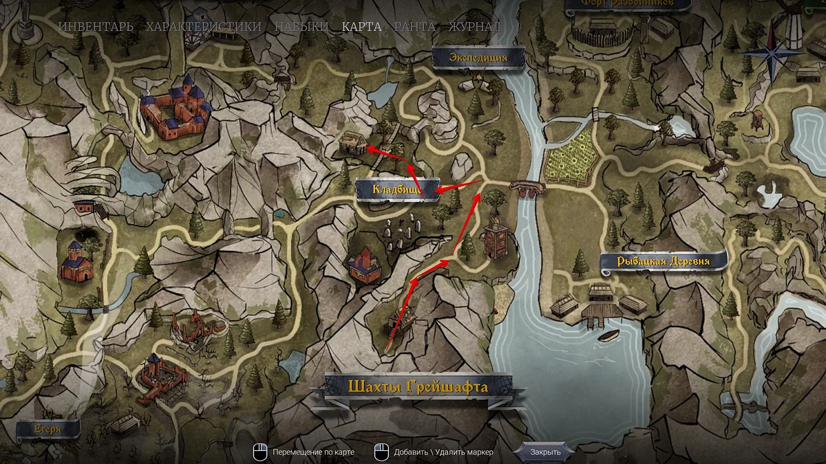 Отправляйтесь к каменному мосту в локации «Рыбацкая деревня», а затем следуйте по дороге слева от кладбища, пока не упрётесь в шахты. Покажите Меллоду (Mellod) грамоту, чтобы вы могли войти в рудники. Но сперва прочитайте следующий абзац.