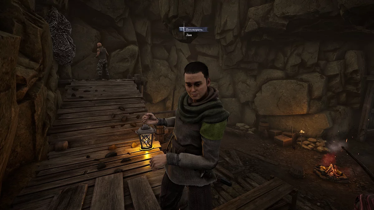 Все семь шахтёров из списка дадут всего 21 кусок железной руды. Поднимите к Бладу и отыщите в штольне слева Тхорста. Он может помочь закрыть долг, для этого нужно добыть особенную кирку.