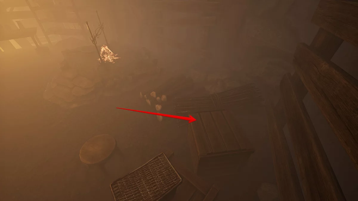Спуститесь к навесу около Блада и возьмите два куска железа.