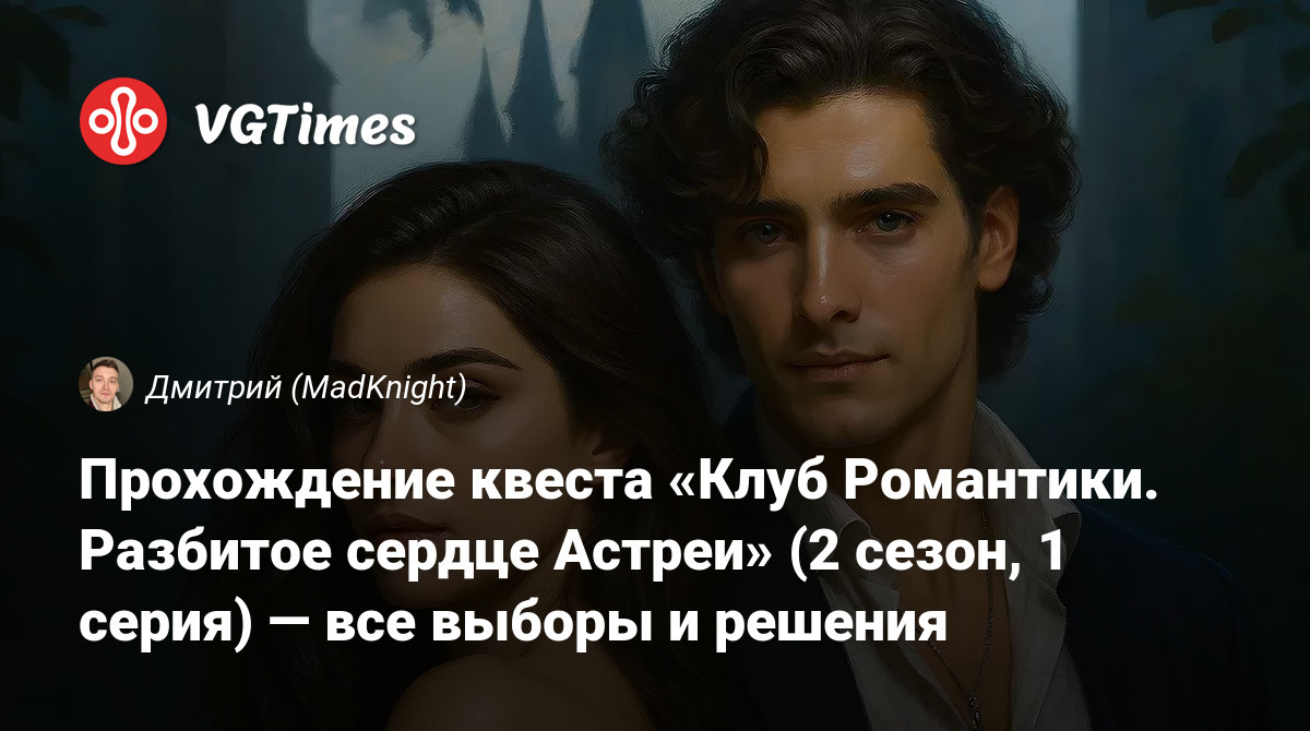 Прохождение квеста «Клуб Романтики. Разбитое сердце Астреи» (2 сезон, 1 серия) — все выборы и решения
