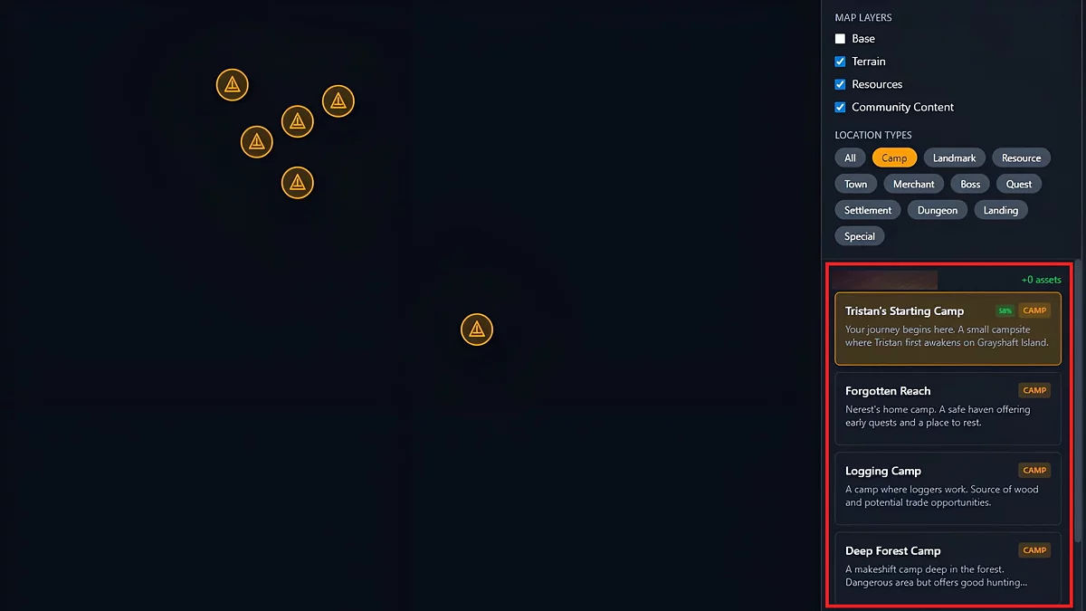 - Стартовый лагерь Тристана (Tristan's Starting Camp);