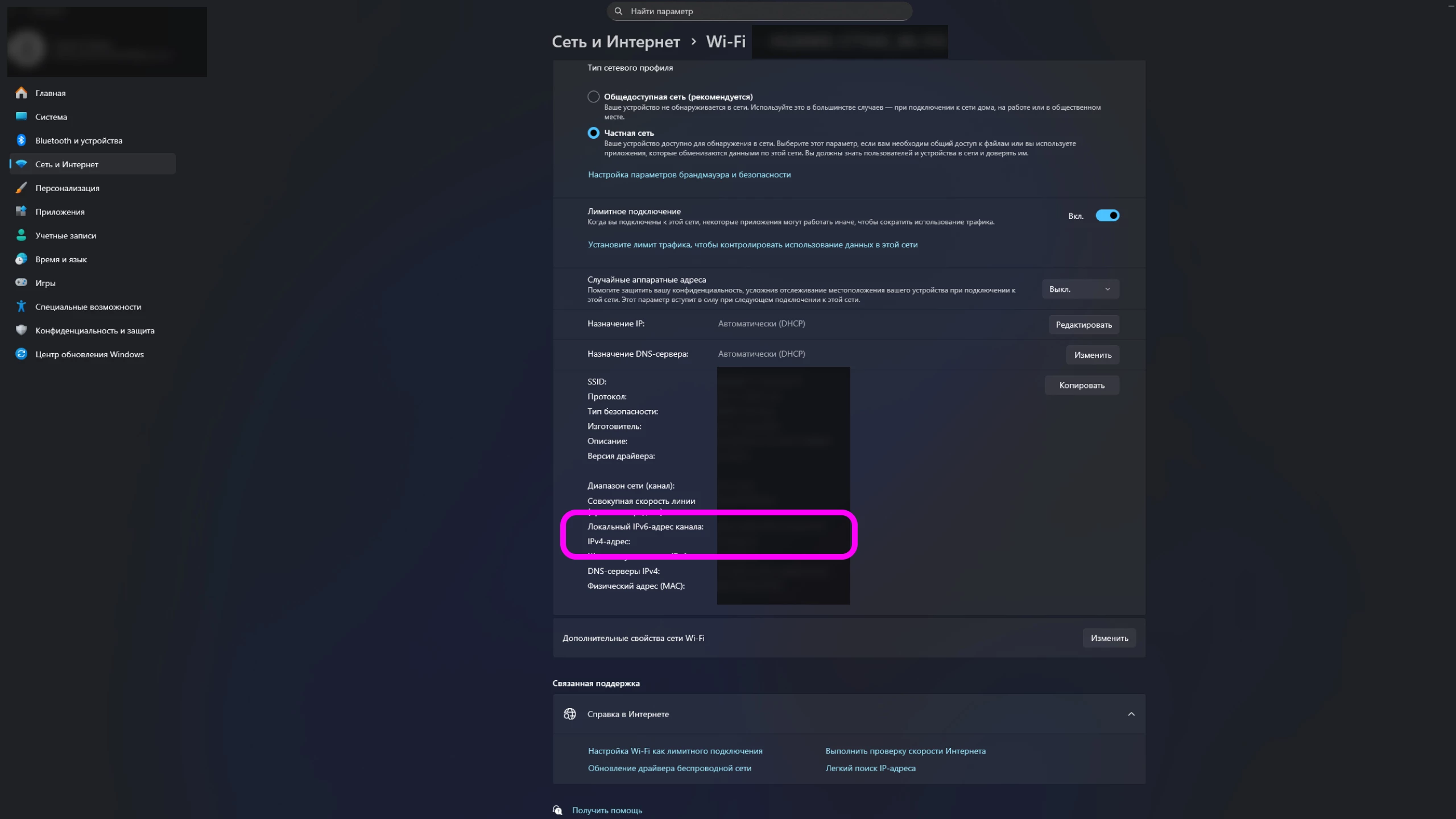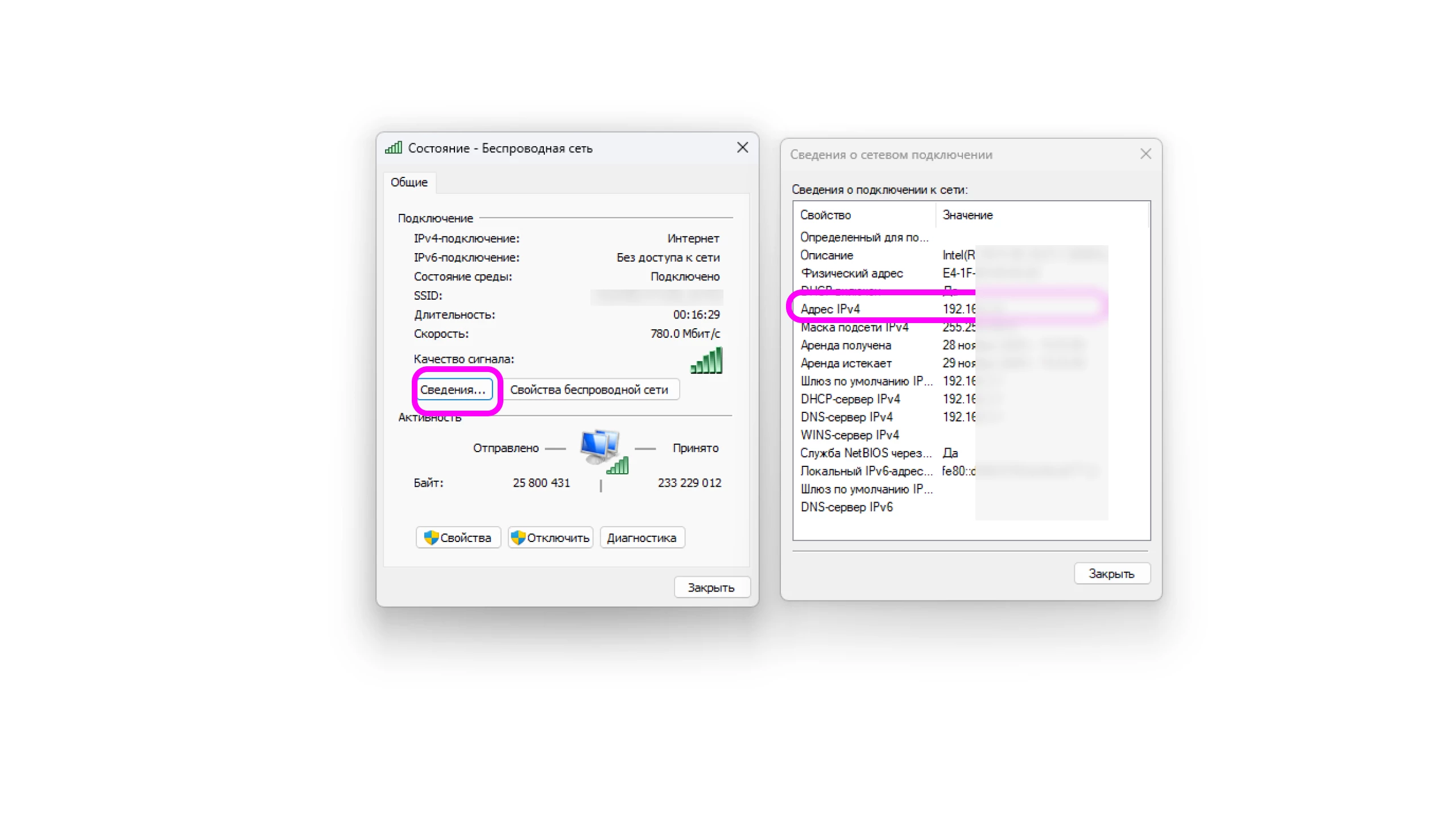 Там снова находим «IPv4-адрес» и нужные числа справа.