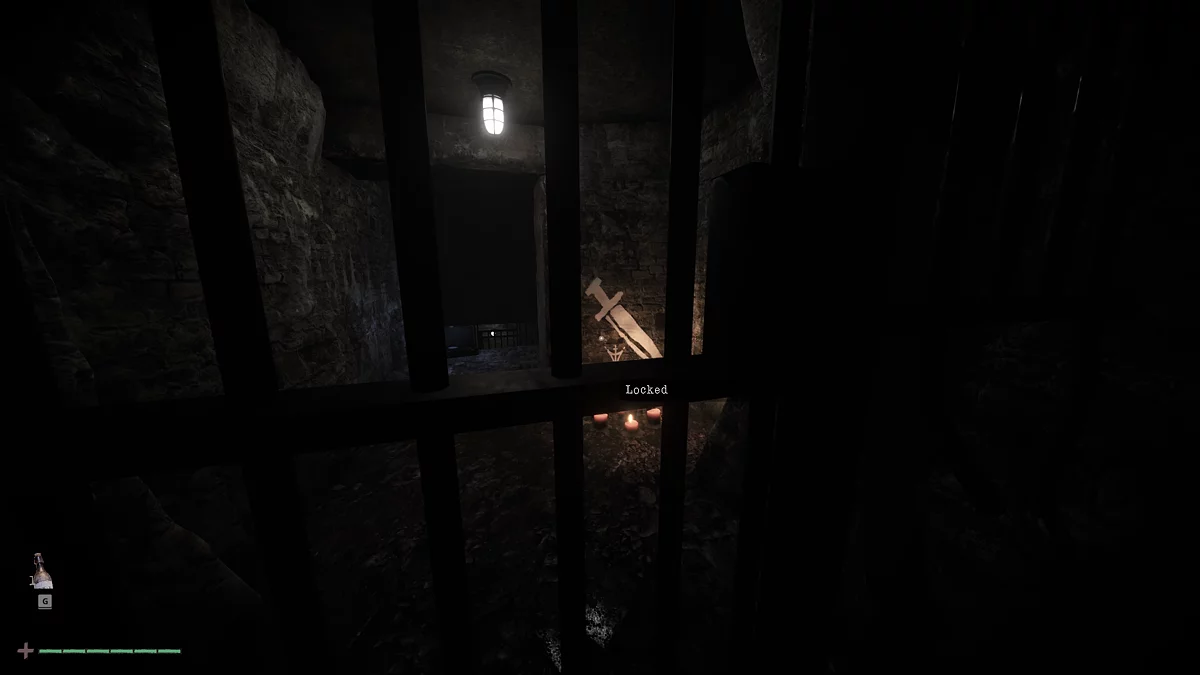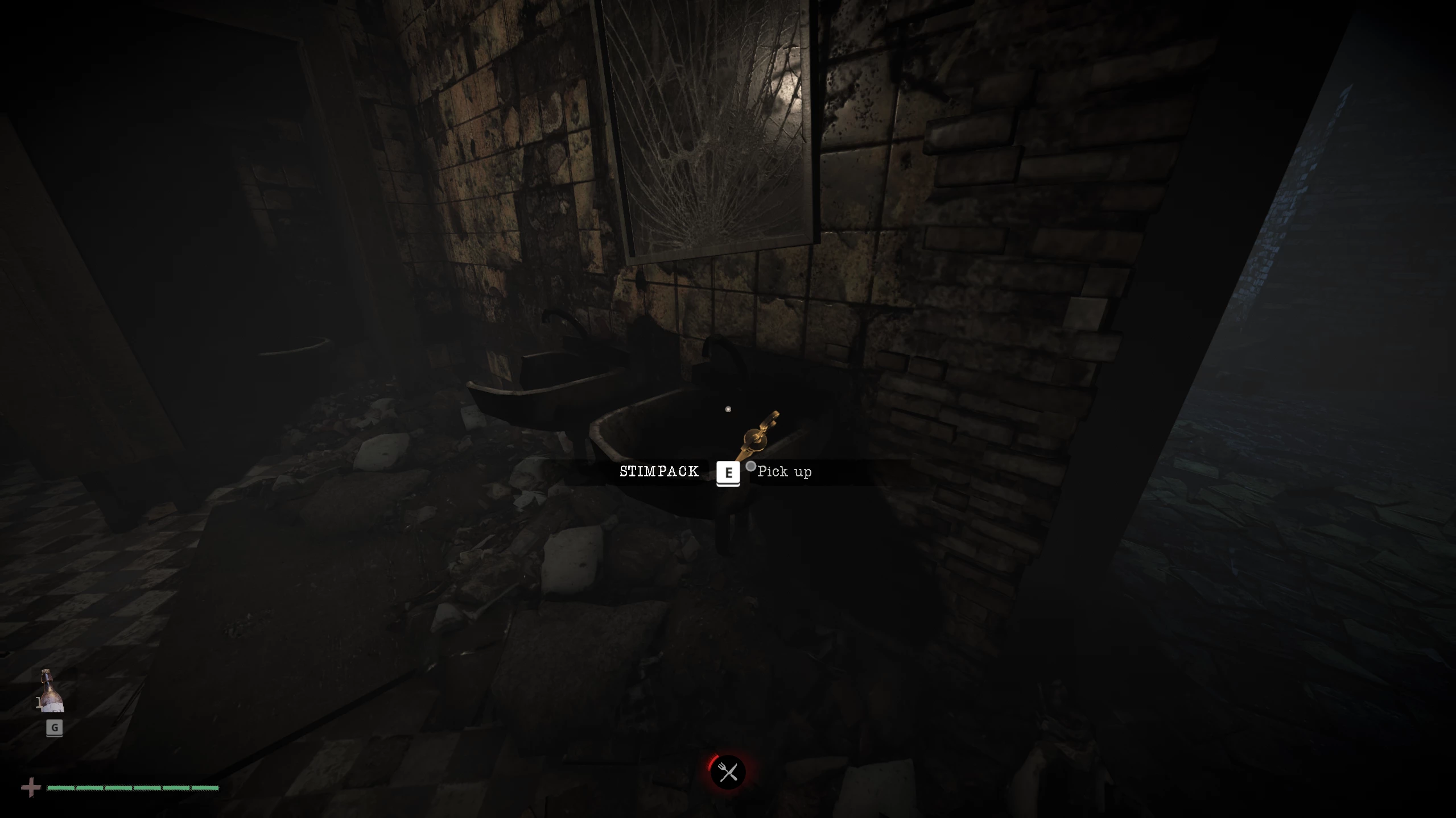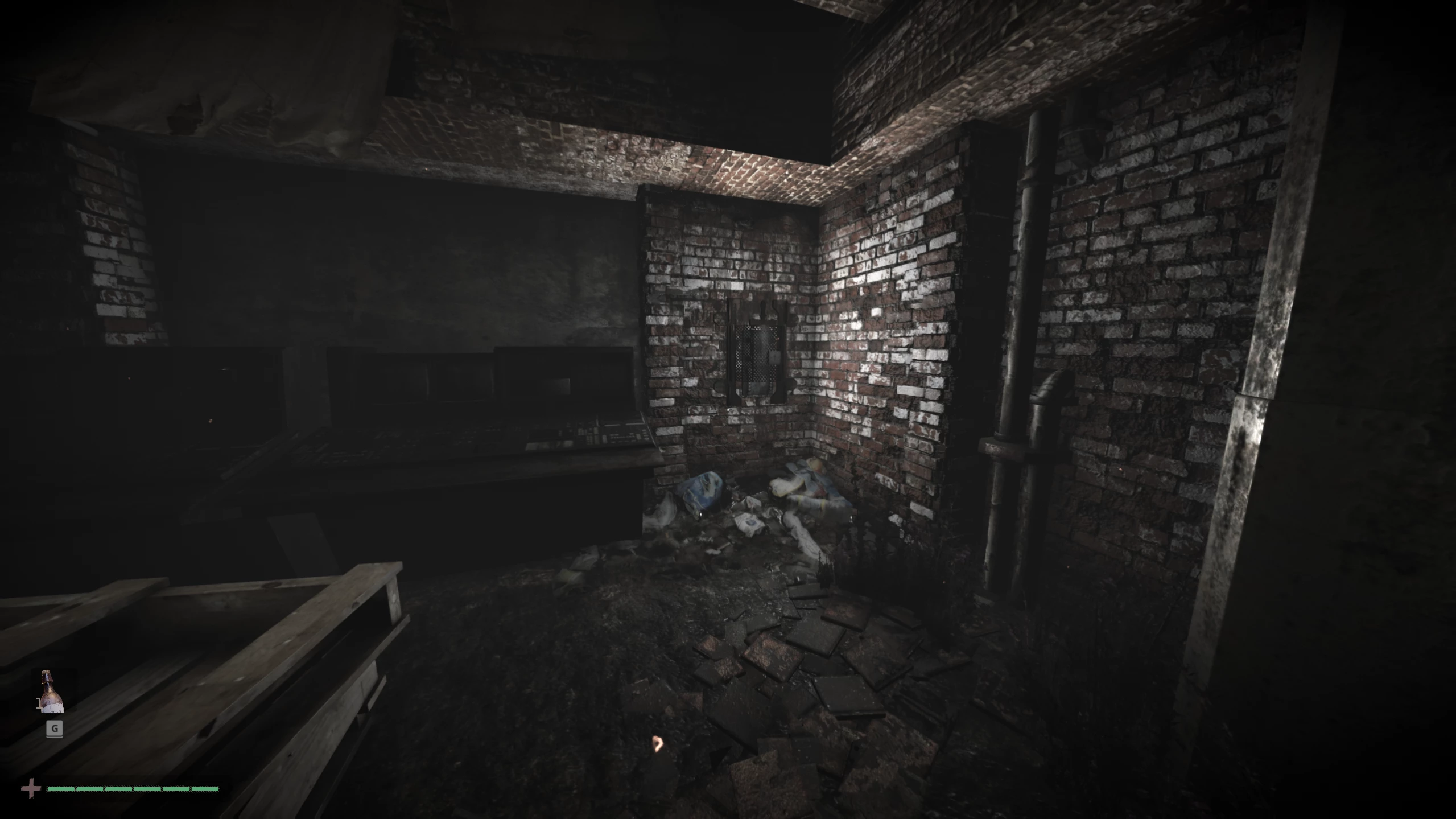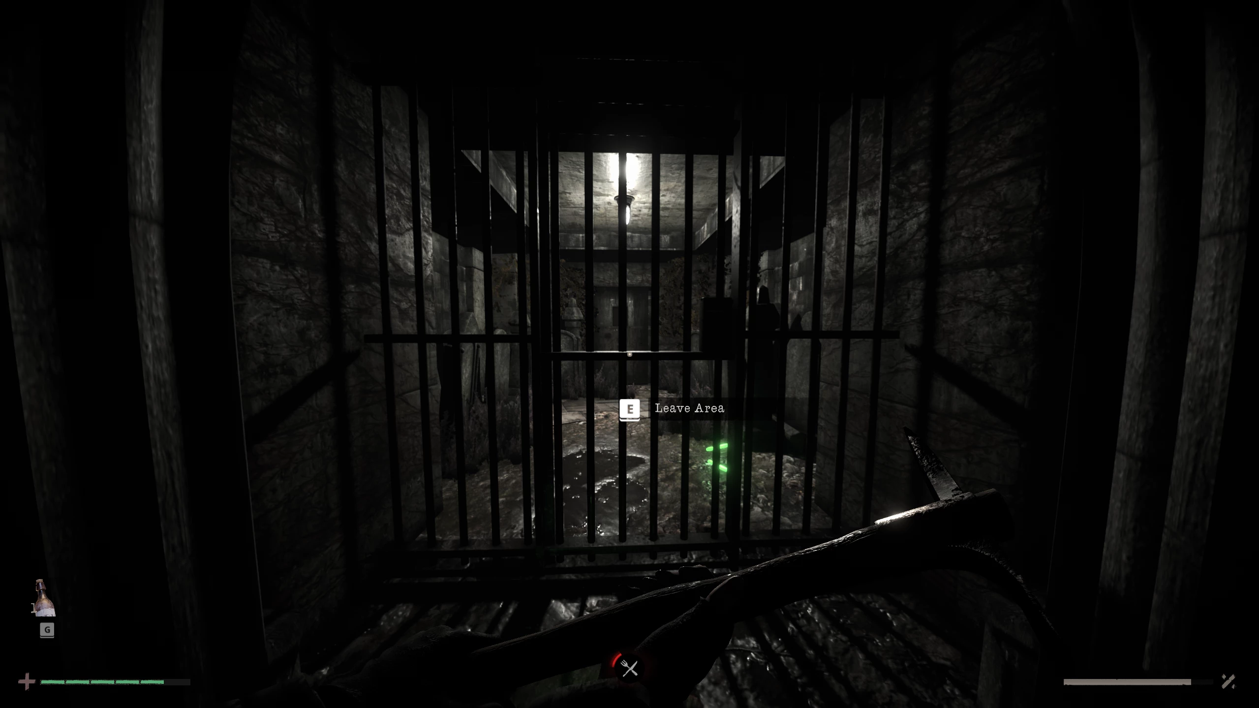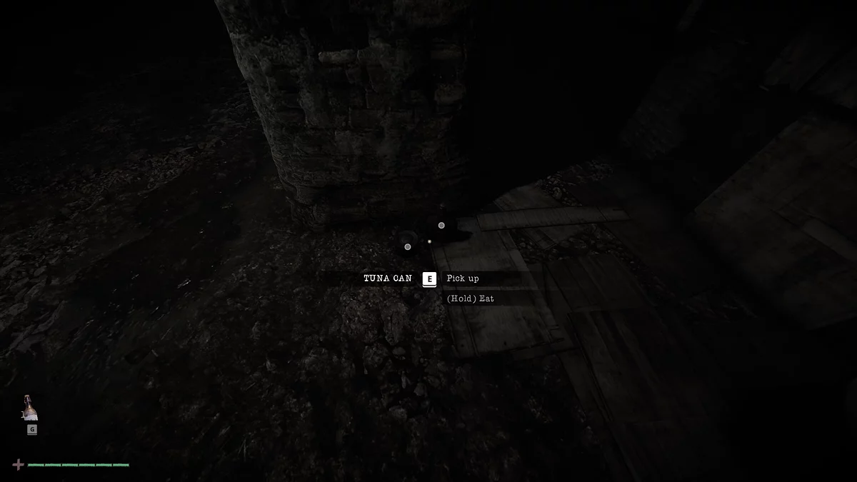 Перед открытой решеткой будет лежать первое оружие ближнего боя — кирка. При атаке она может разрушать деревянные ящики, разбросанные по всему зданию, чтобы получить различные крафтовые материалы или припасы. На данный момент у нее не так много прочности, поэтому стараемся использовать ее только по назначению, а именно для разрушения досок, препятствующих нам на пути.