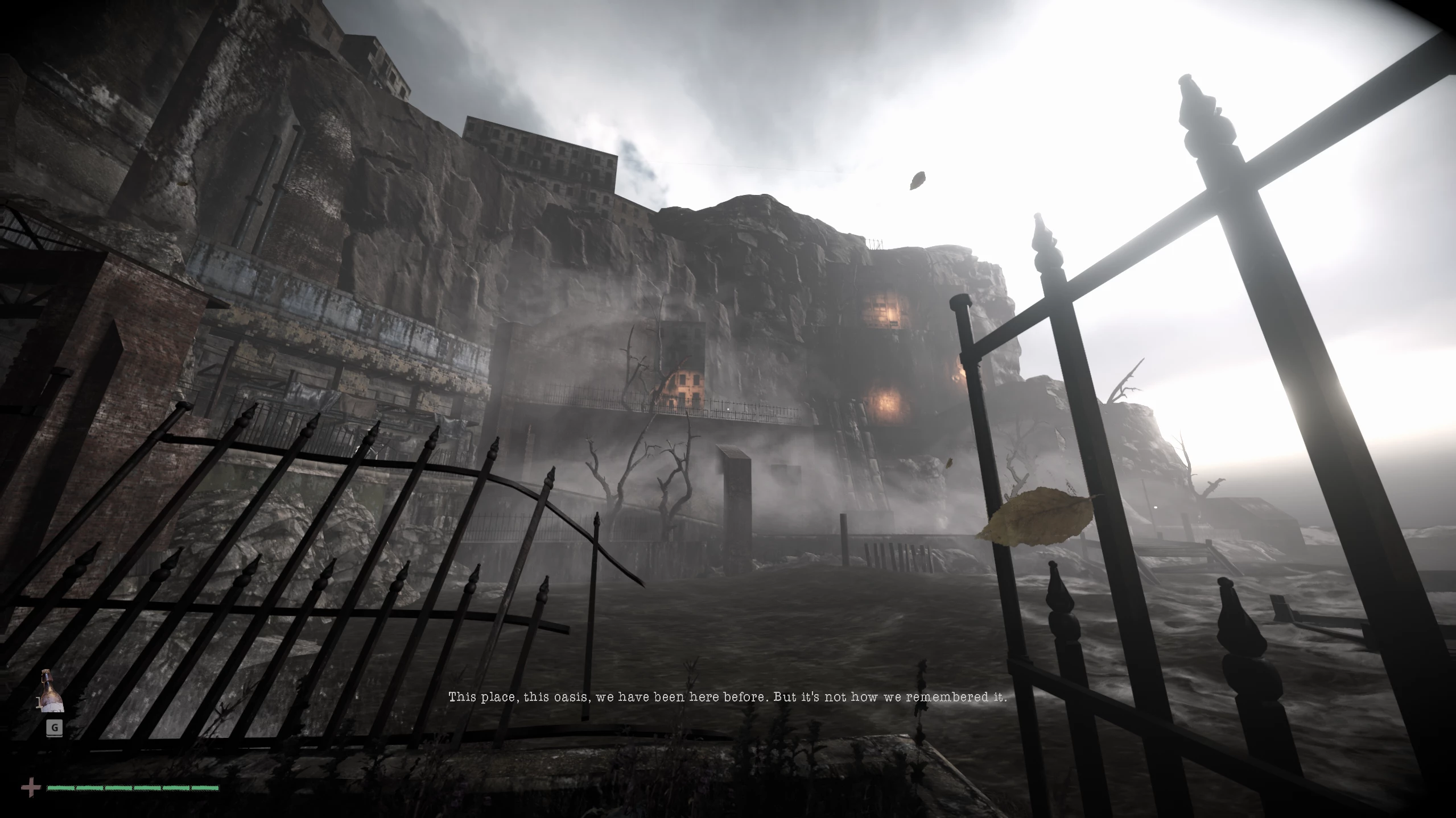 Некогда это место считалось оазисом, но болезнь поразила его. Голос просит нас дойти до шахты на севере, так как там будут спрятаны все тайны и секреты острова.