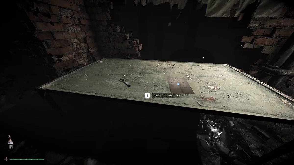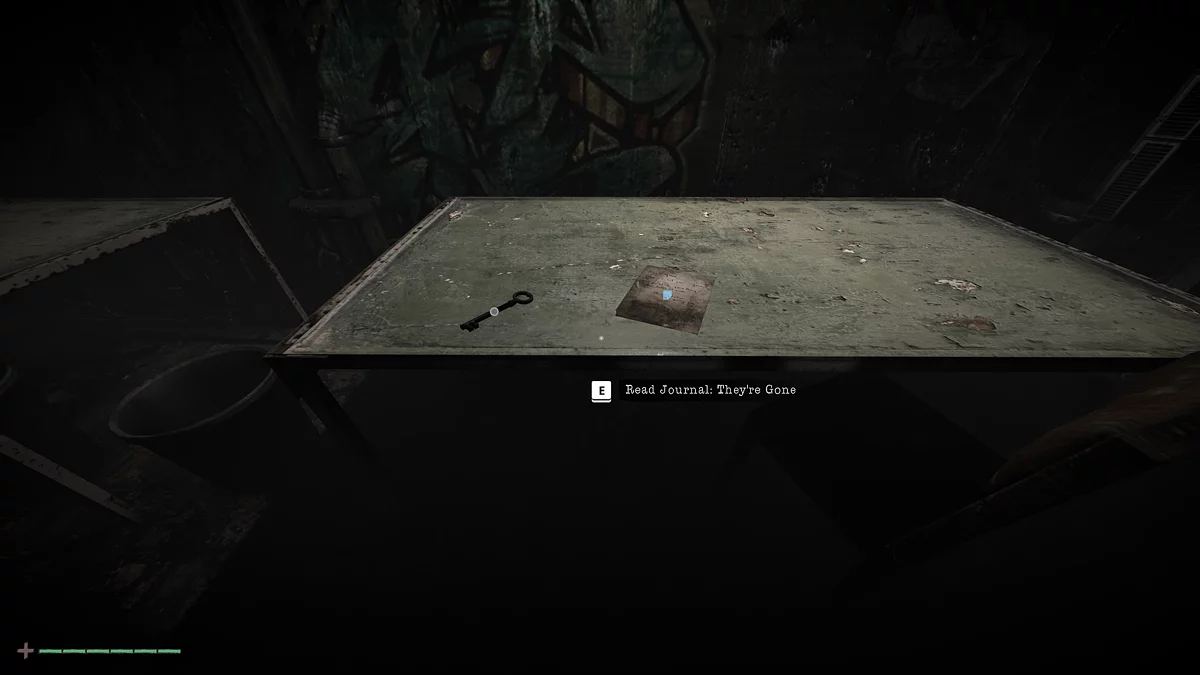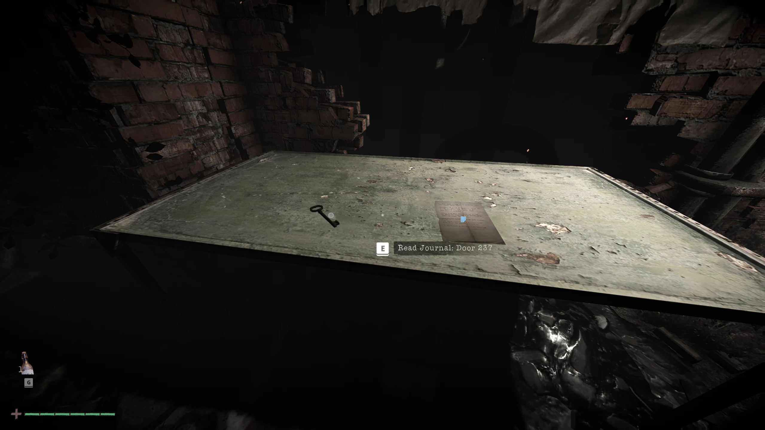 Проходим вглубь коридора и проходим в дверь справа. На столе подбираем первый лист дневника некоего рабочего, а также нужный нам ключ.