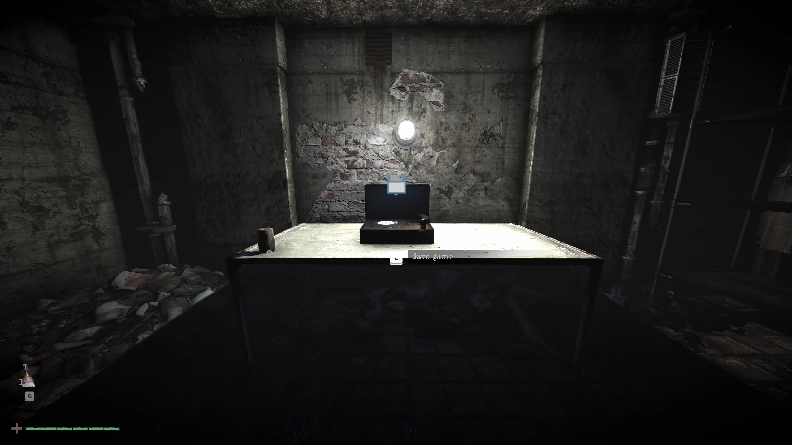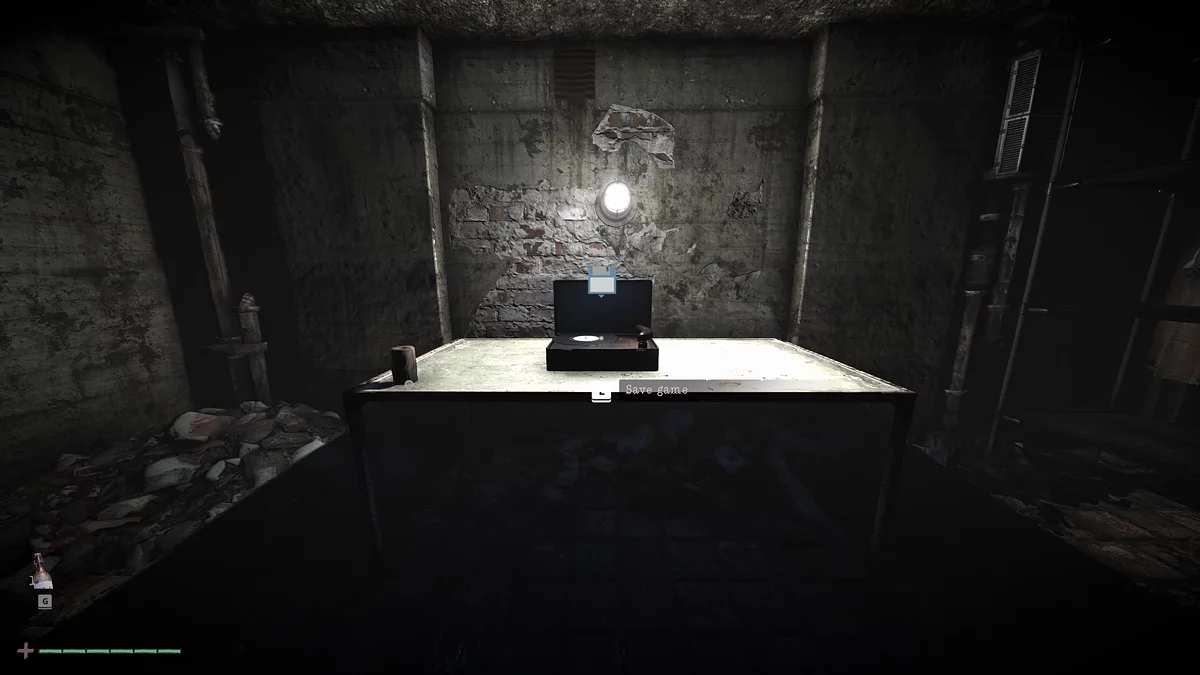 Поворачиваем направо и натыкаемся на первую точку сохранения. Здесь они представлены в виде специальных проигрывателей. Забираем хлеб с банкой тушенки на столе и сохраняемся.