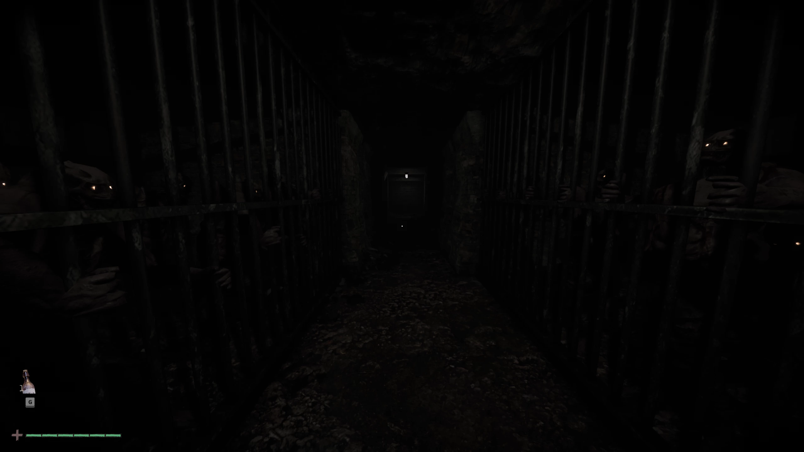 После получения припасов идем по коридору, замечаем странное существо за решеткой и идем за ним.