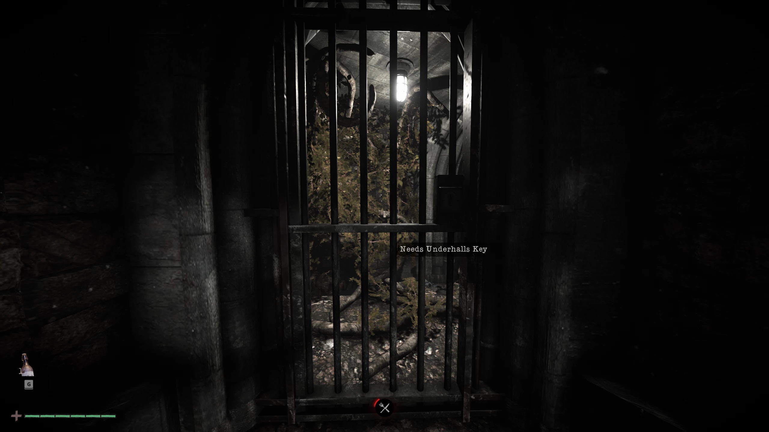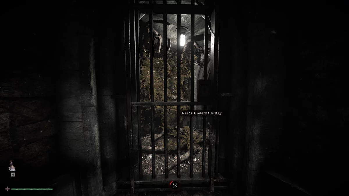 В коридоре поворачиваем налево и видим закрытую решетчатую дверь. Чтобы ее отпереть необходимо найти прибрежный ключ на территории заброшенного завода.