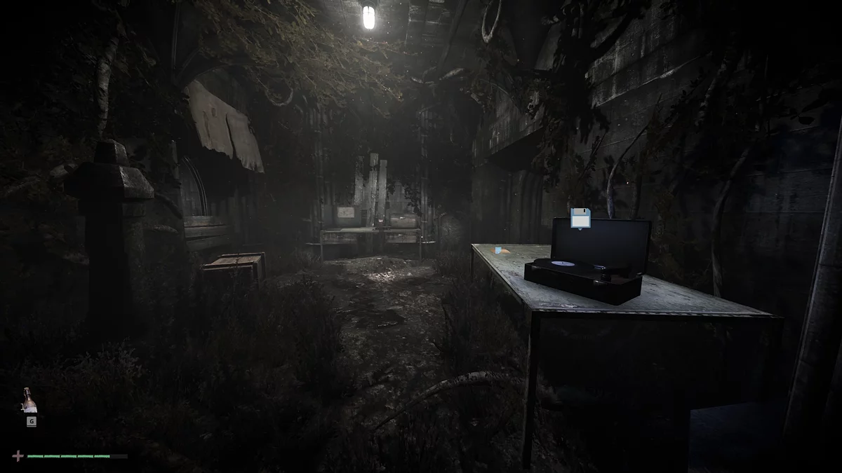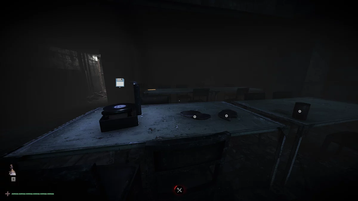 Проход приводит нас к мастерской с проигрывателем для сохранения.