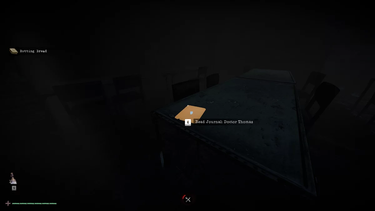 На столе будет находиться куча различных припасов, включая мясо, банки с тушенкой и хлеб. Забираем их себе, а также не забываем подобрать страницу дневника на столе позади.