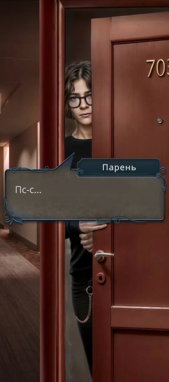 Побег из квартиры прервался тихим шепотом. Его источник просунул голову в приоткрытую дверь соседней квартиры. Заговорщицки шипя, на них таращился странный парень. Он предложил рассказать, что на самом деле происходило в той квартире.