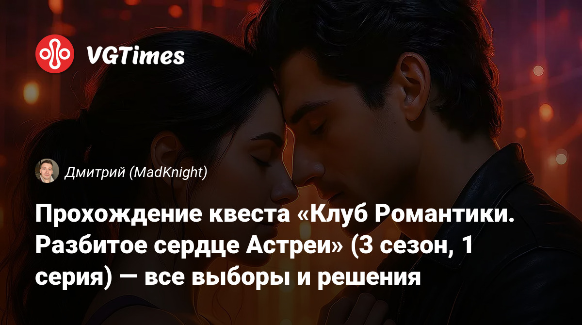 Прохождение квеста «Клуб Романтики. Разбитое сердце Астреи» (3 сезон, 1 серия) — все выборы и решения