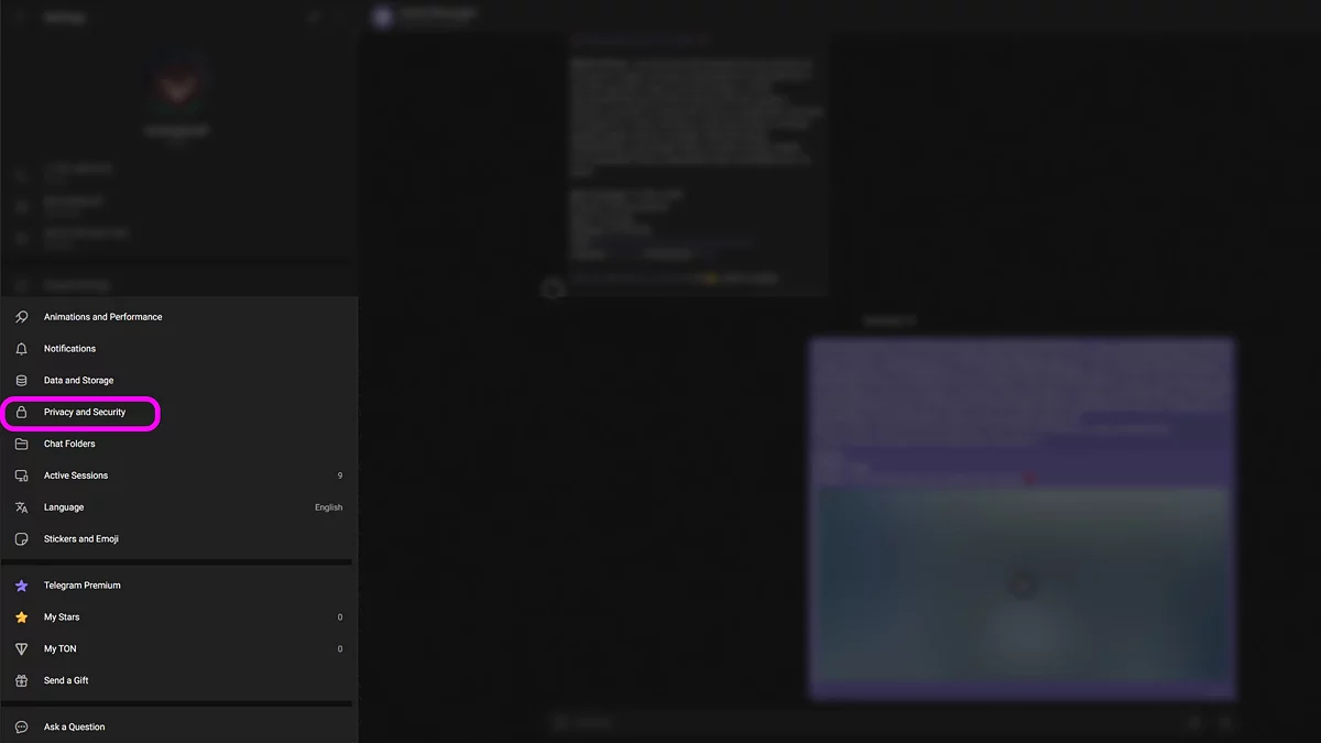 В версии Telegram для компьютера настройка конфиденциальности осуществляется через общий раздел параметров: