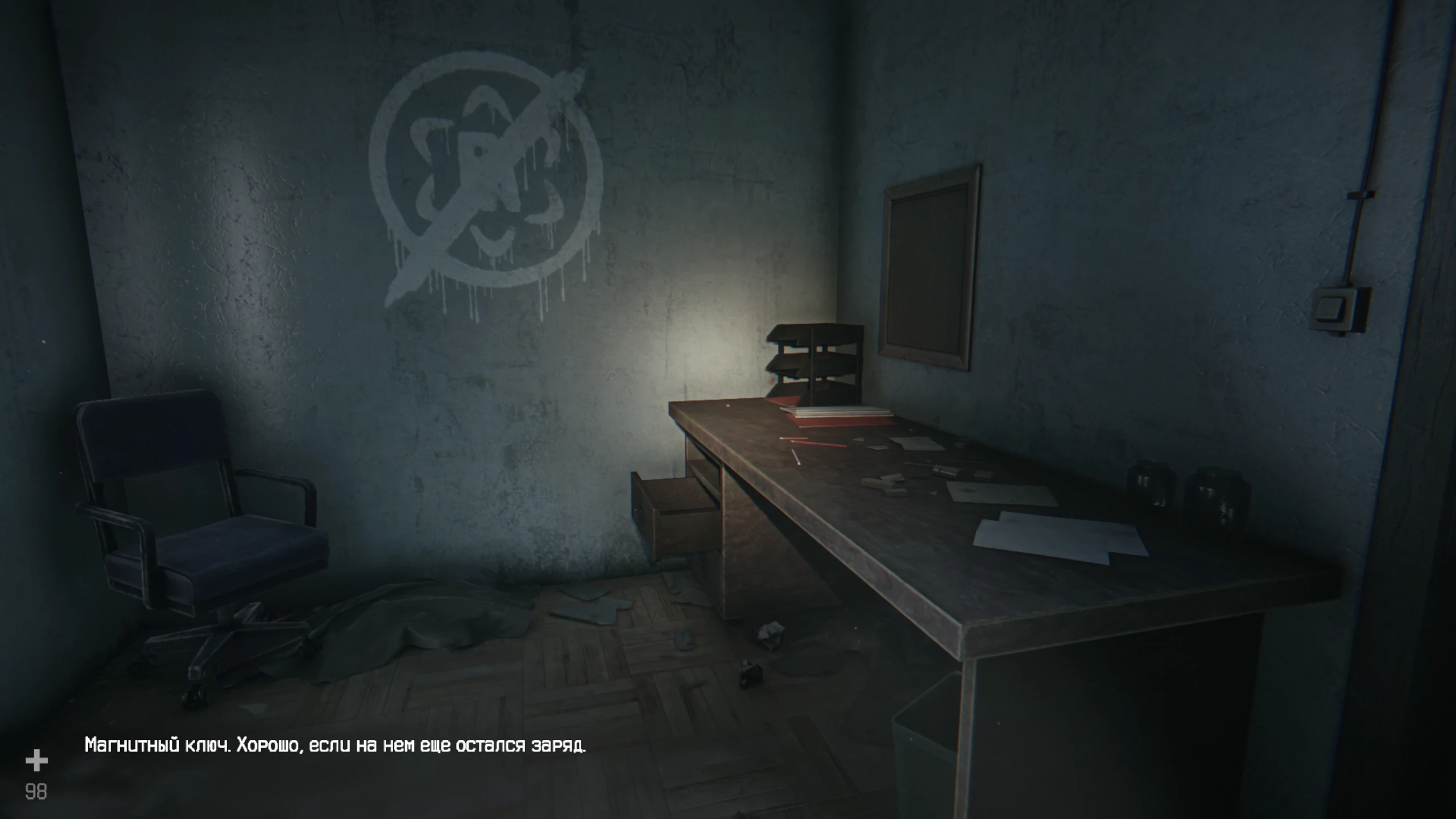 Активируется мини-игра, где нужно правильно нажать на четыре символа, которые зашифрованы на картинке. Порядок ввода указан в правой части монитора. Изучите все записи, после чего возвращайтесь домой. Взаимодействуйте со столом, используя колёсико мыши, чтобы поменять предмет. Выберите магнитный ключ и подключите к нему дешифратор. Ещё раз обследуйте бункер, после чего сломайте питание у колонки. Далее следует посмотреть на камеры и подойти к выходу. Начнётся катсцена, после которой Игнат выйдет в другую дверь.