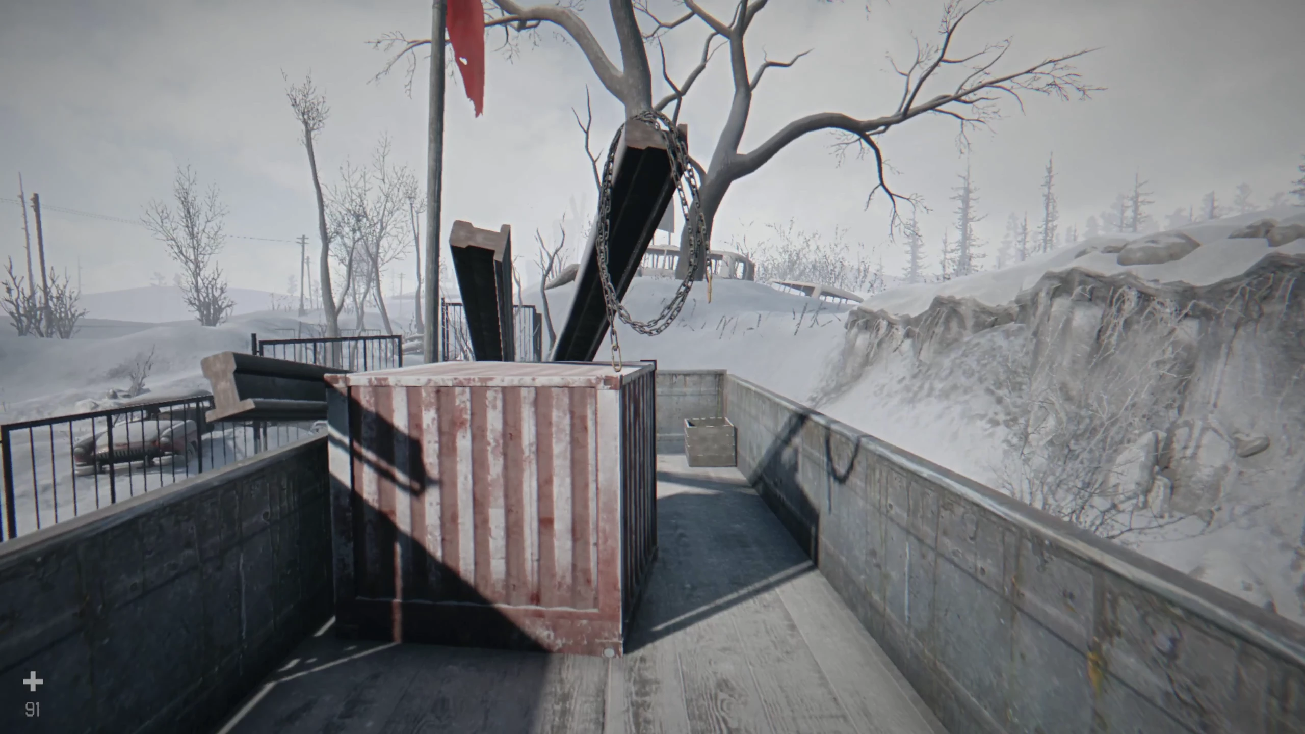 Начнётся новый сон, в котором Игната позовут домой. По лестнице поднимайтесь сразу на третий этаж. На следующий день вас познакомят с дроном, который пригодится немного позже. У него нет заряда, поэтому можете сразу испытать. Дрон летает на расстоянии до 40 метров от пульта. Садитесь в машину и посетите башню. В ящике будет несколько продуктов питания. Возвращайтесь к указателям и на развилке поверните налево к шлагбауму. Выйдите из машины, чтобы открыть механизм, после чего следуйте по дороге, пока не начнётся катсцена.