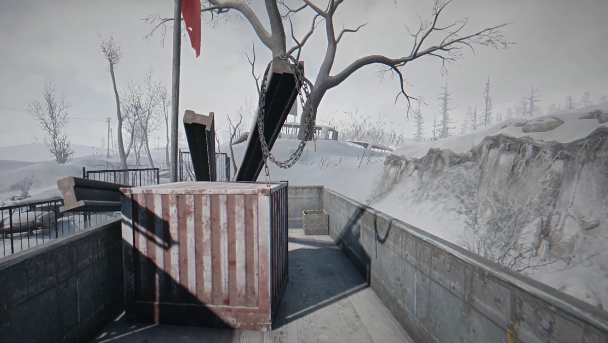 Развернитесь на машине и поверните направо, в объезд разрушенных труб. Двигайтесь по дороге, пока не доберётесь до ретранслятора. Припаркуйтесь носом к закрытому забору и установите цепь, закрепив её на двери и фаркопе под правой фарой. Открыв ворота, двигайтесь пешком дальше к тоннелю, на который светит один из фонарей. Чтобы открыть решётку, нужно экипировать слесарный ключ и взаимодействовать с деревяшкой, ритмично двигая мышкой вперёд-назад.