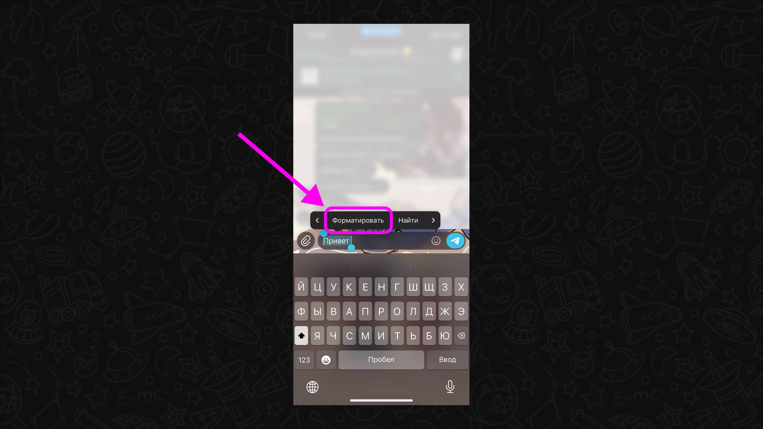 Для того чтобы отправить скрытый текст на смартфоне, выполняются похожие действия: