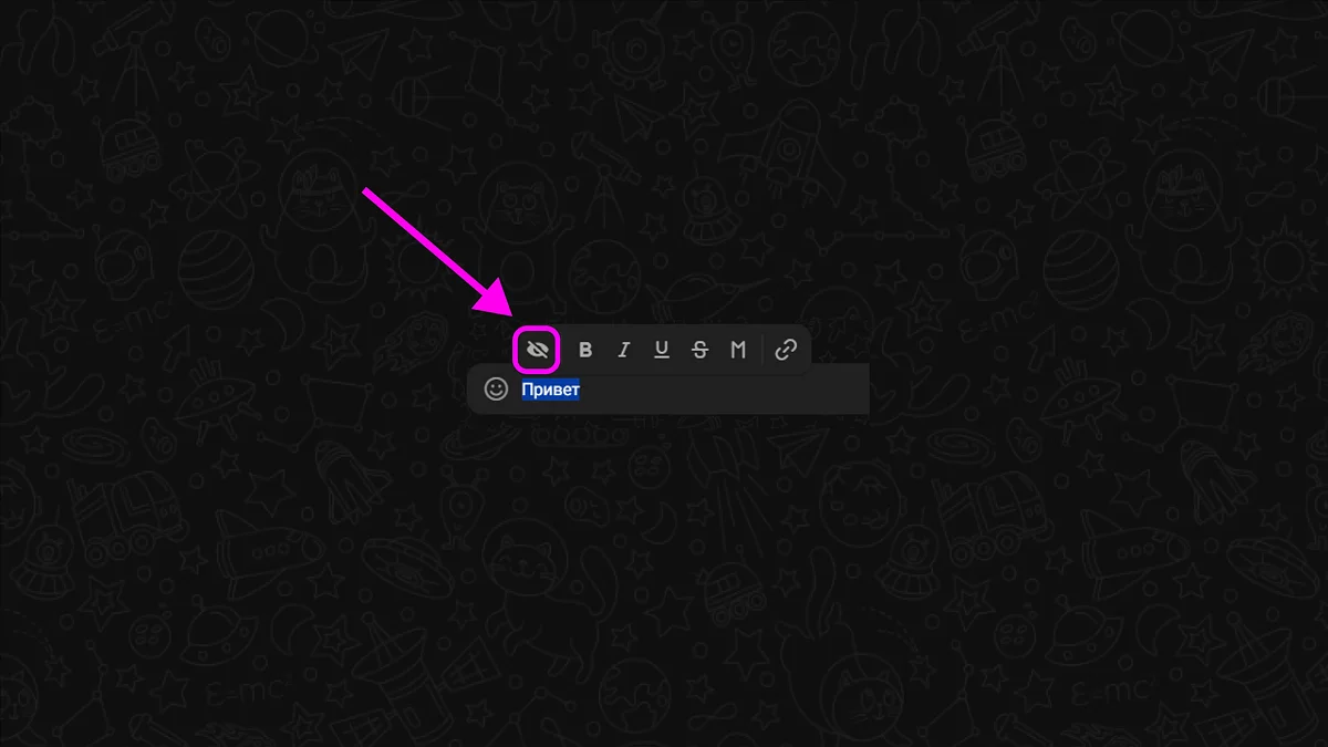 - Выберите пункт «Спойлер» или иконку с перечеркнутым глазом в меню форматирования.