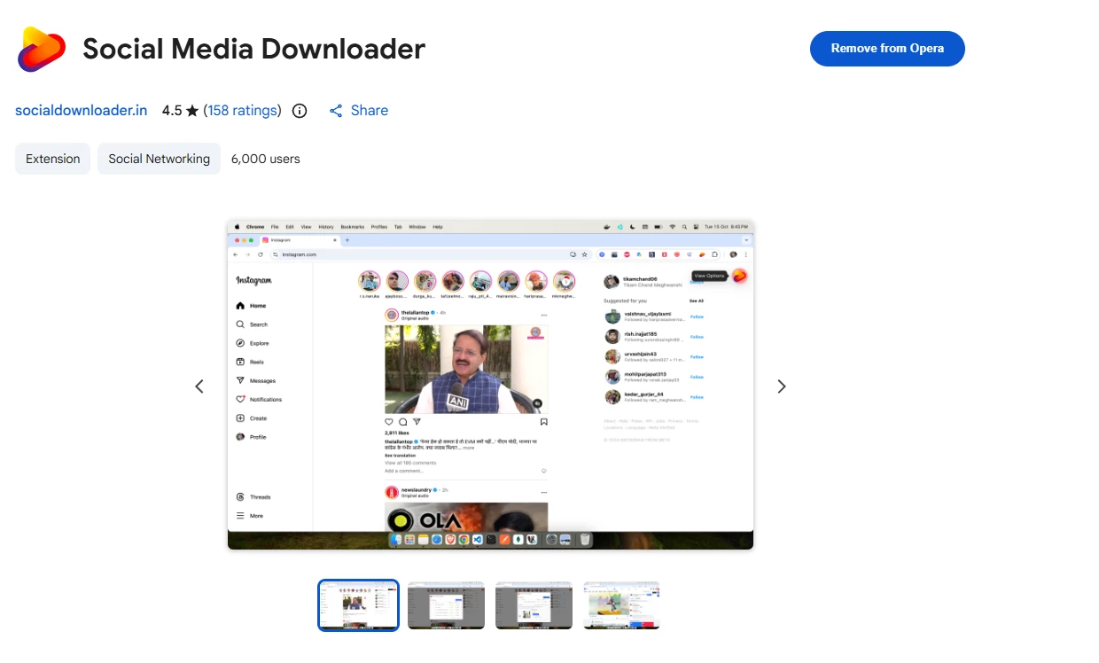 Как понятно из названия, расширение позволяет скачивать ролики с различных социальных сетей, в частности Instagram*, Facebook* и Twitter.