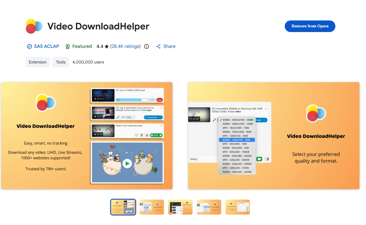 Расширение работает с более чем сотней различных видеохостингов и позволяет быстро скачивать видео в хорошем разрешении.