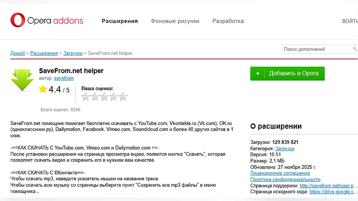 SaveFrom.net является одним из самых популярных онлайн-сервисов для скачивания видео и аудио высокого качества с различных платформ, в том числе YouTube, Instagram*, Facebook*, ВКонтакте и многих других. Он позволяет легко и быстро получать контент с интернета без необходимости устанавливать какие-либо дополнительные программы или приложения.