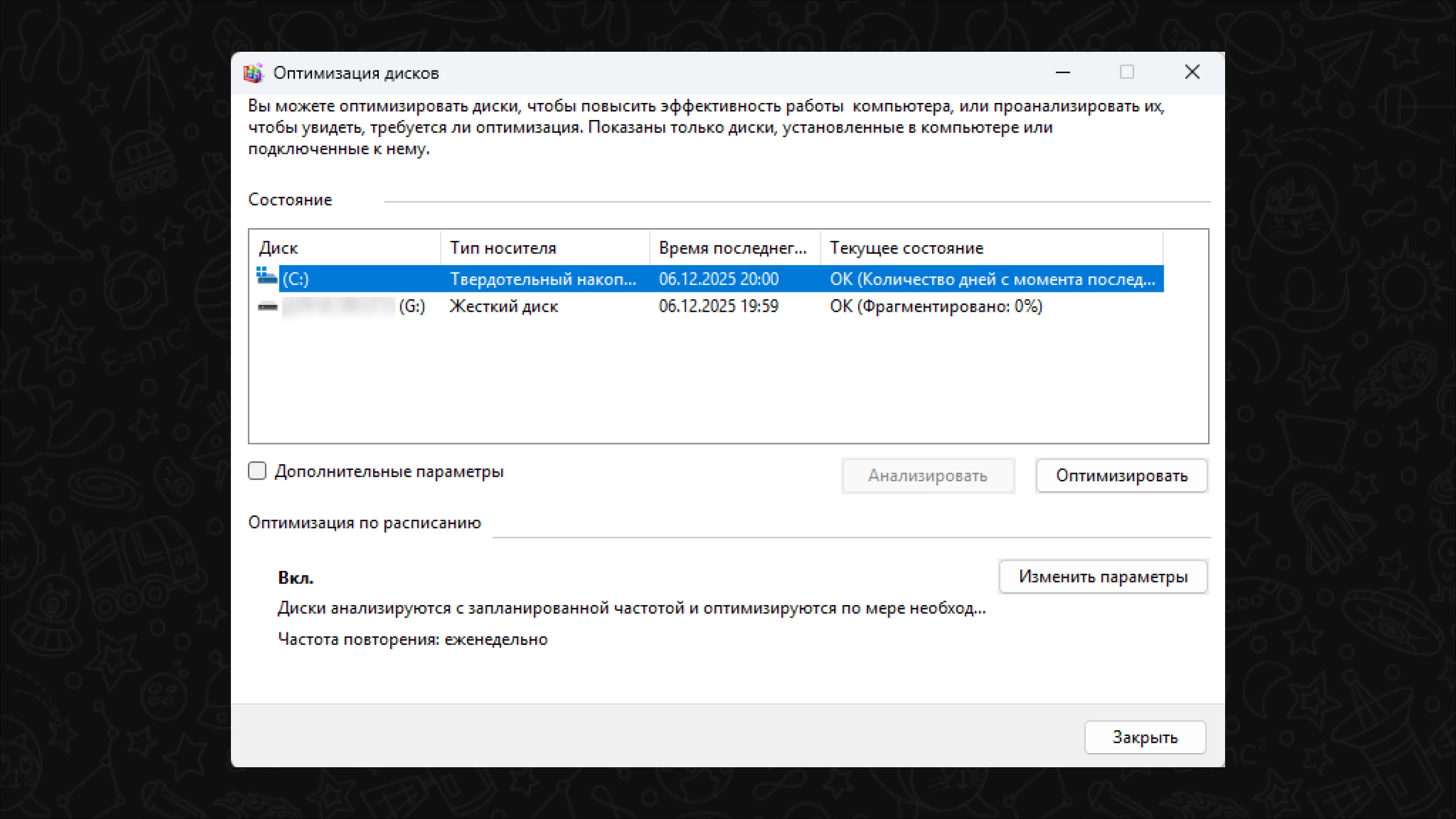 SSD работает иначе: время доступа к данным одинаково по всему накопителю, а оптимизацию блоков выполняет контроллер. Ручная дефрагментация создаёт лишние циклы записи и ускоряет износ, сокращая срок службы накопителя.