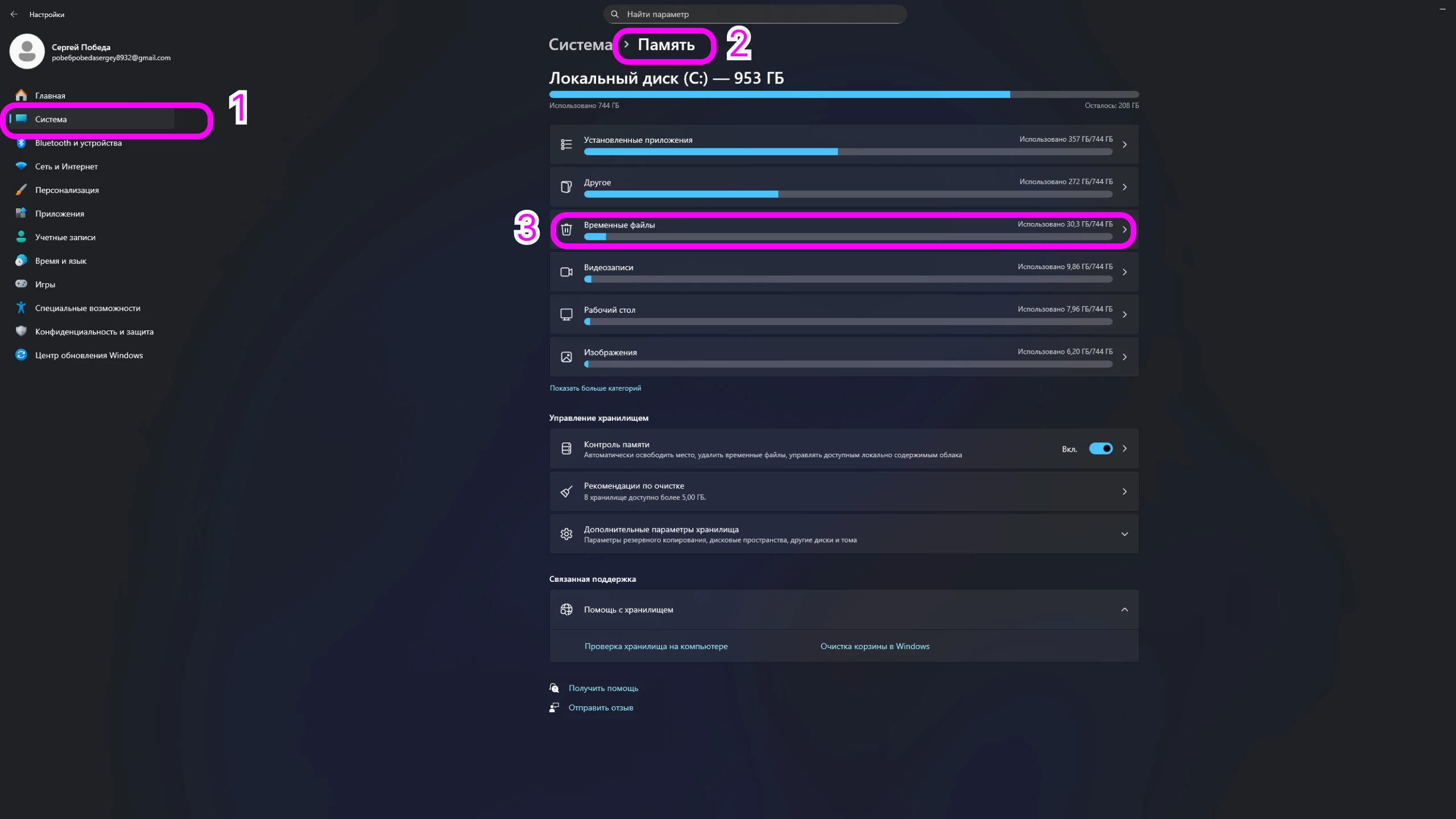Чтобы открыть хранилище, нажмите Win+I — «Система» — «Память».