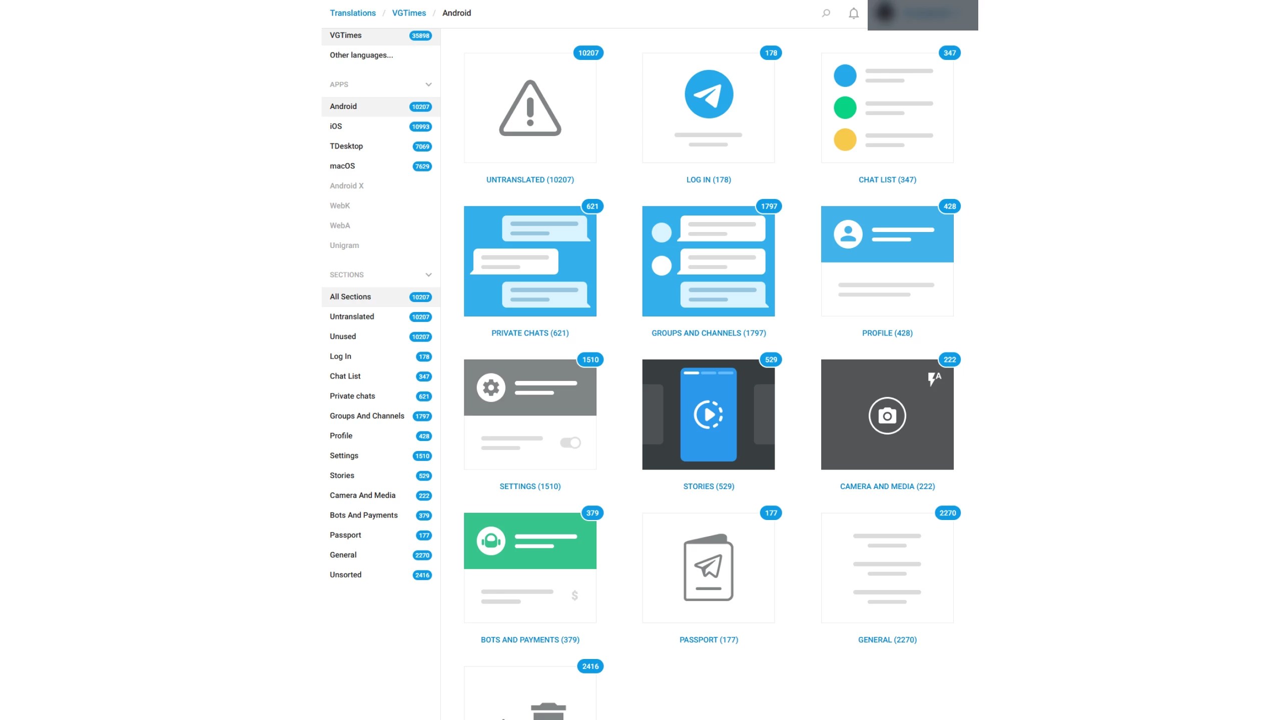 В языке сотни ключей, и каждый отвечает за свою строку. Telegram делит их по следующим категориям: