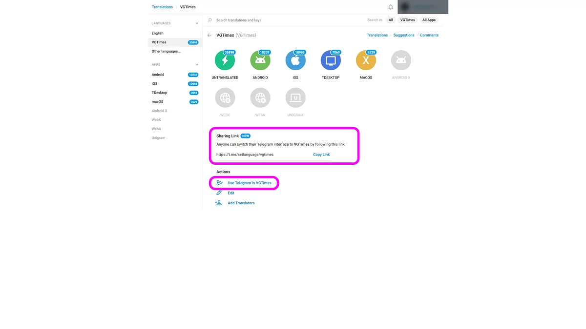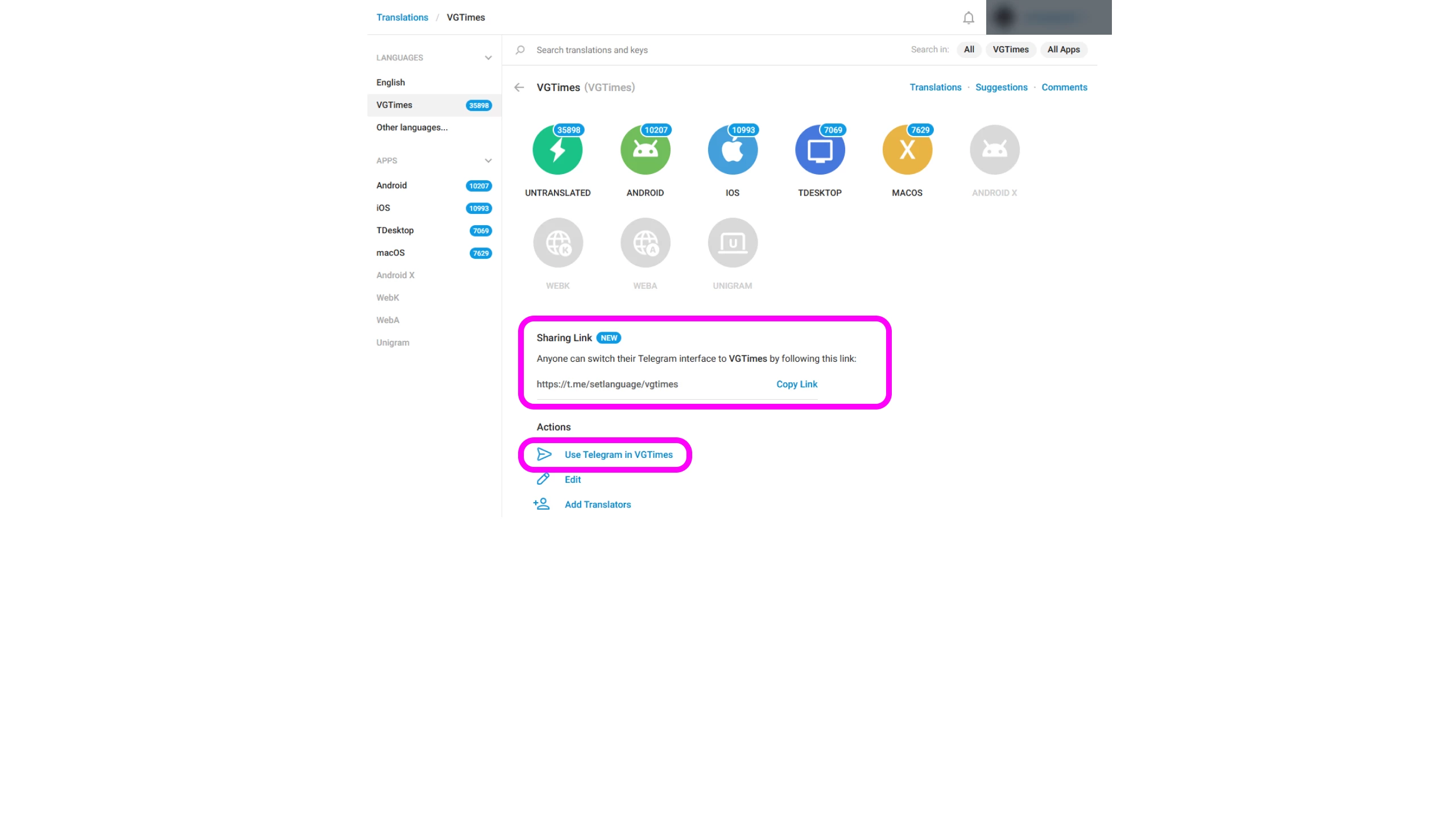 В основе кастомизации лежит Telegram Localization Platform — официальная платформа для перевода интерфейса. Через неё можно как улучшать существующие официальные языки, так и создавать собственные.