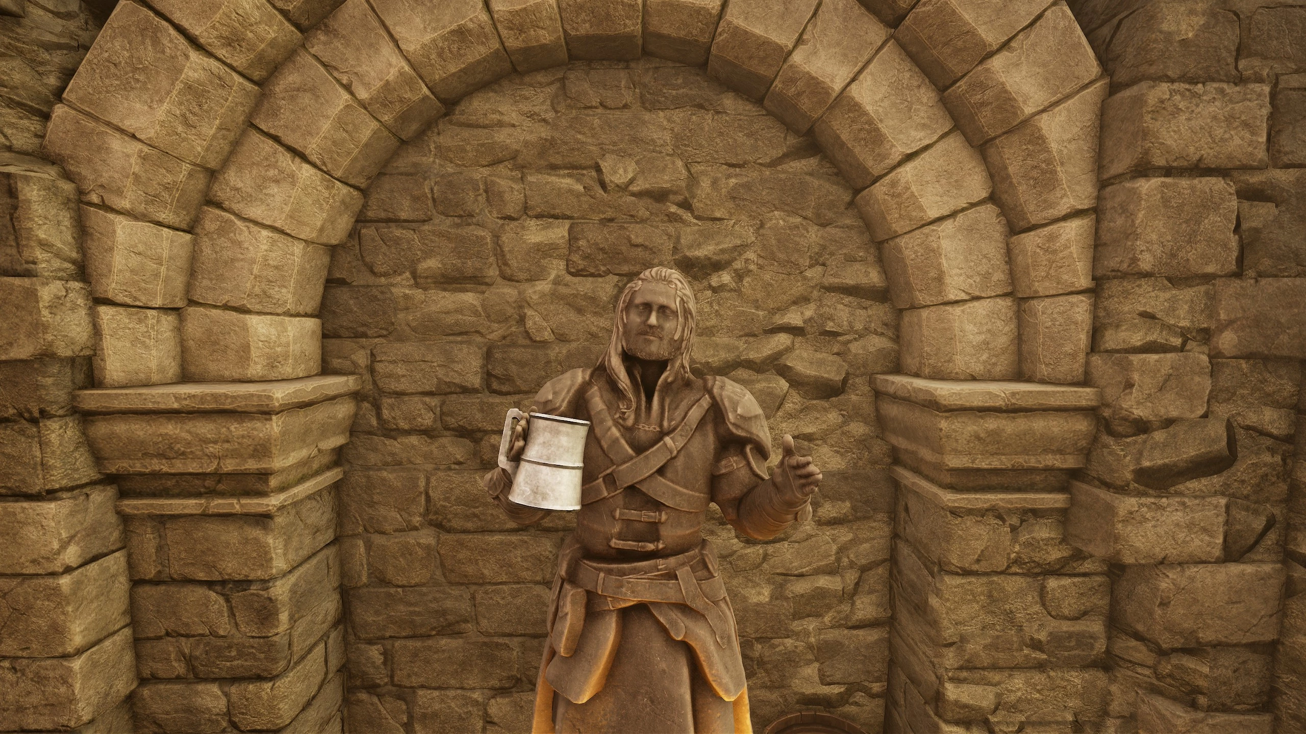 Также обратите внимание, что статуя в руке держит железный пивной стакан. Соответственно, эта решётка обладает магическими свойствами. Чтобы пройти через неё, нужно быть пьяным — в состоянии, при котором Тристана шатает, а экран «плывёт». Для этого достаточно выпить три любых спиртных напитка, например «Ржонки». Если при себе нет алкоголя, можете сходить к Радиму и купить выпивку. Достаточно один раз пройти через решетку пьяным, после чего она будет для героя открыта до тех пор, пока он что-нибудь не возьмёт.