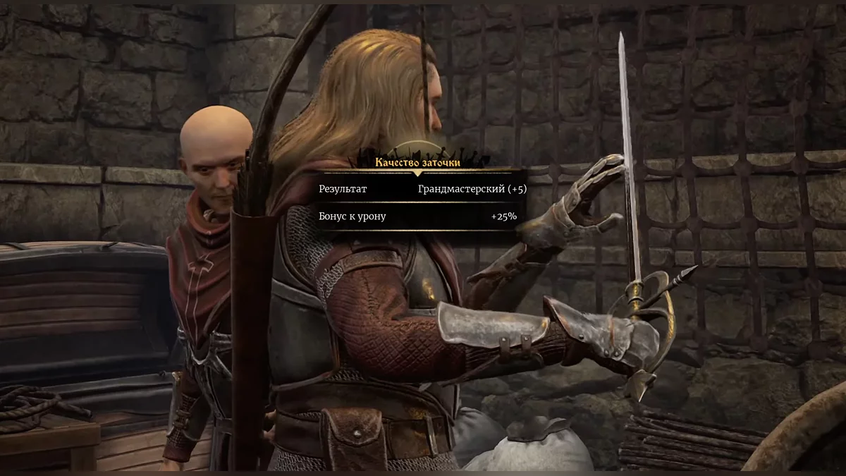 Заточка оружия — важнейший механизм, которым придется заниматься на регулярной основе. С каждым ударом меч, рапира или топор — тупятся и наносят меньше урона. В свою очередь хорошо заточенное оружие наносит немного более повышенный урон. Правда здесь надо запомнить, что эффект временный.