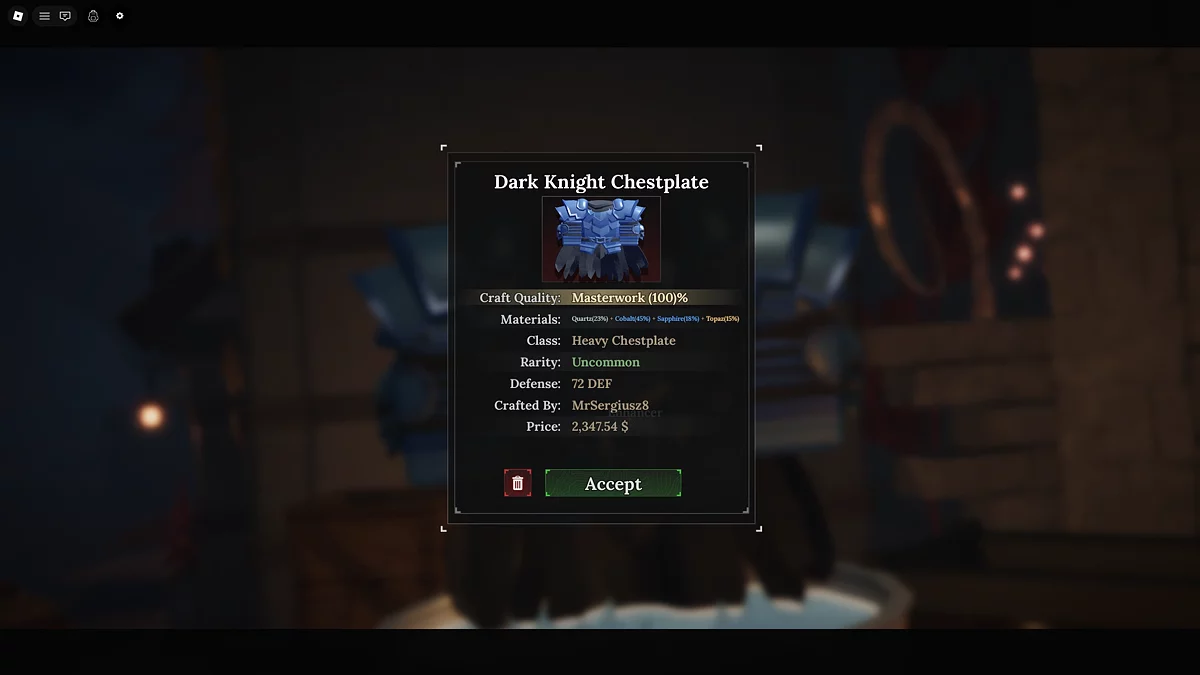 Отдельное значение имеет результат прохождения мини-игры у наковальни. Чем выше точность и успешность выполнения этапов ковки, тем выше категория качества создаваемого предмета. Броня уровня «Masterwork» продаётся значительно дороже стандартных вариантов. При соблюдении определённой техники ковки можно практически гарантированно получать предметы данного качества, позволяя зарабатывать кучу денег за считанные минуты.