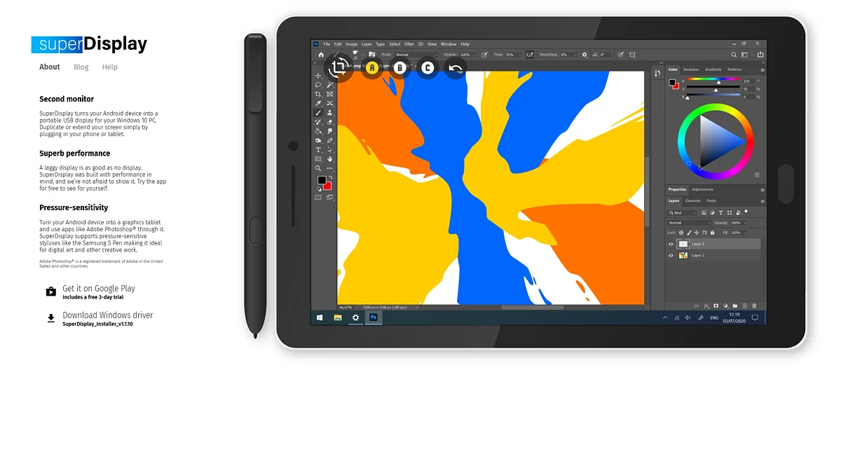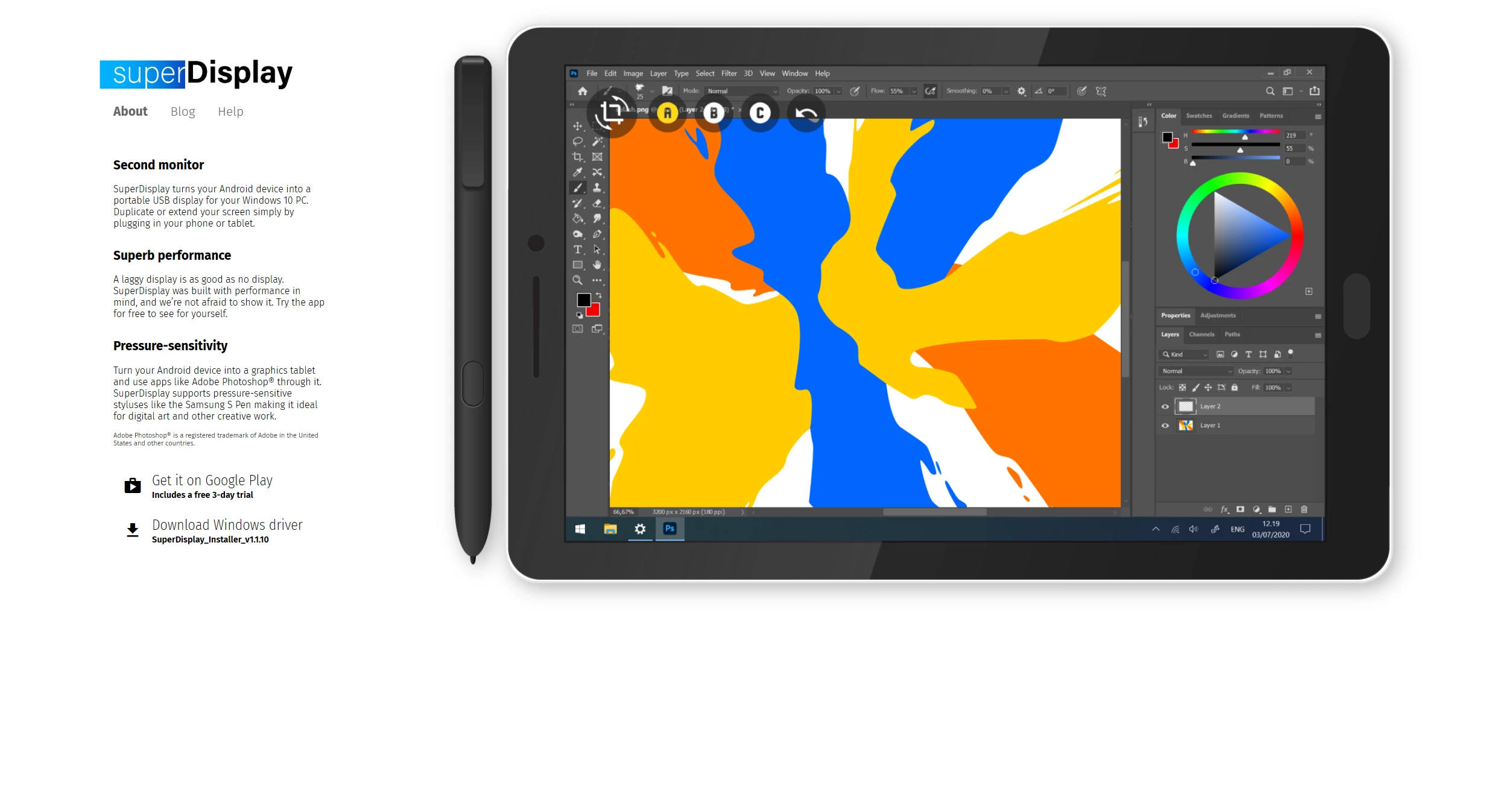 - Скачайте и установите SuperDisplay на компьютер с официального сайта.