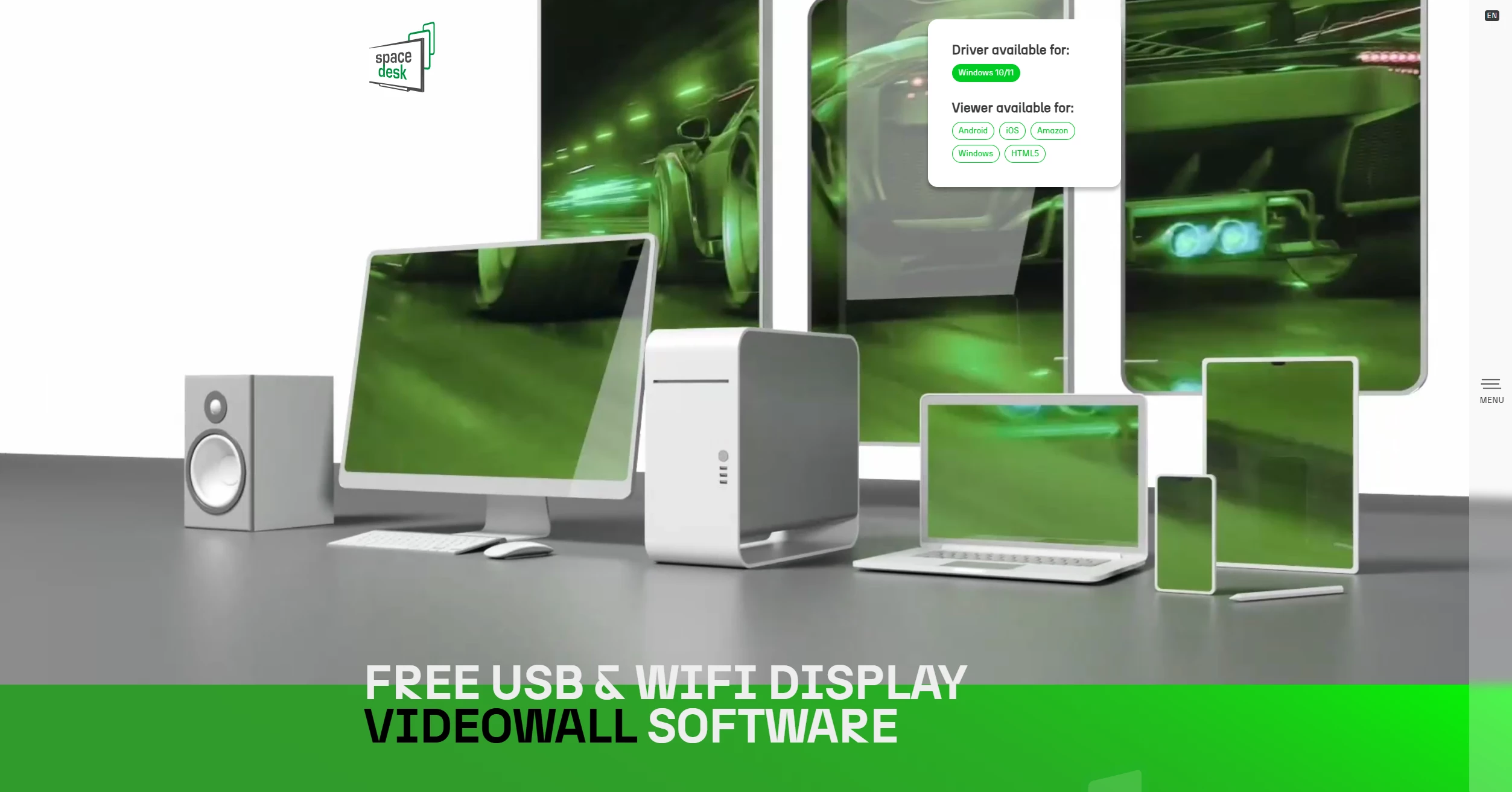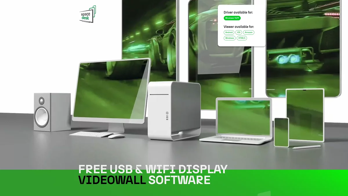 - На компьютер ставится spacedesk DRIVER — он делает Windows передатчиком экрана.