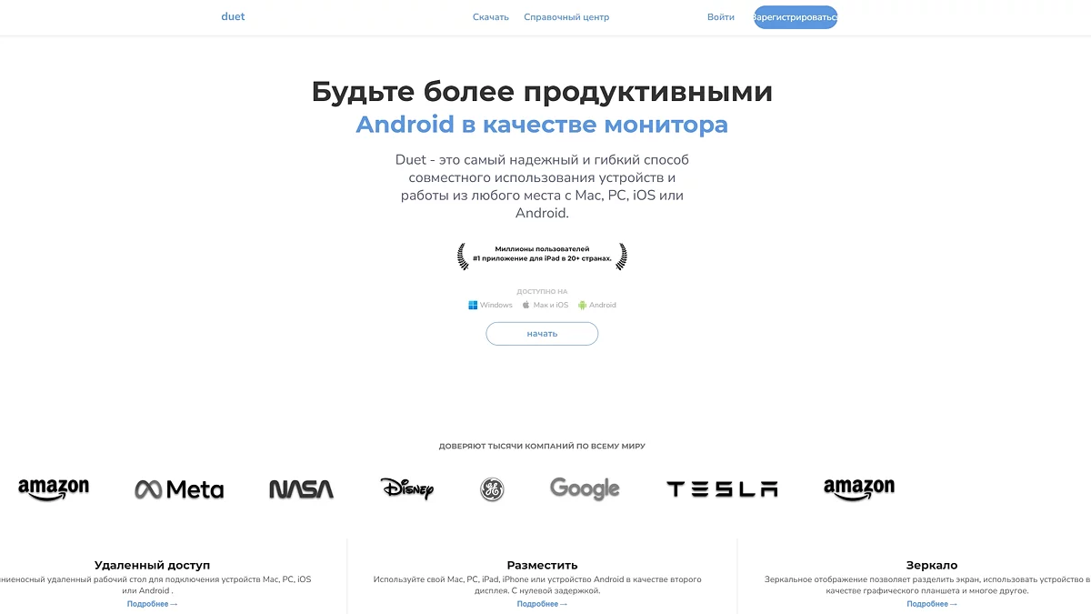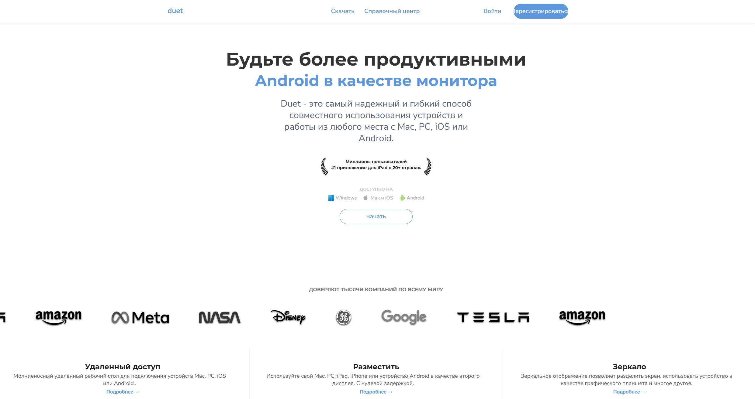 Duet особенно хорош, если нужна быстрая и простая среда для работы: чатами, документами, справочной информацией, панелью инструментов. Он отлично подходит тем, кто хочет расширить рабочее пространство и не заморачиваться с сетевыми настройками.