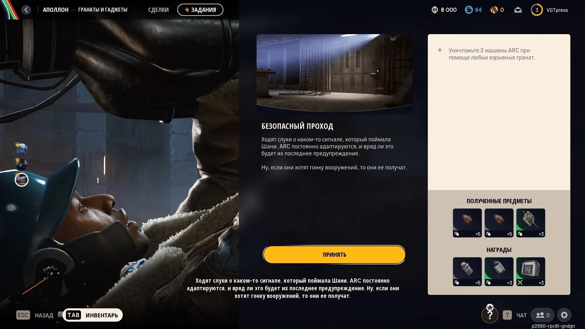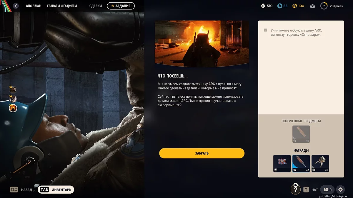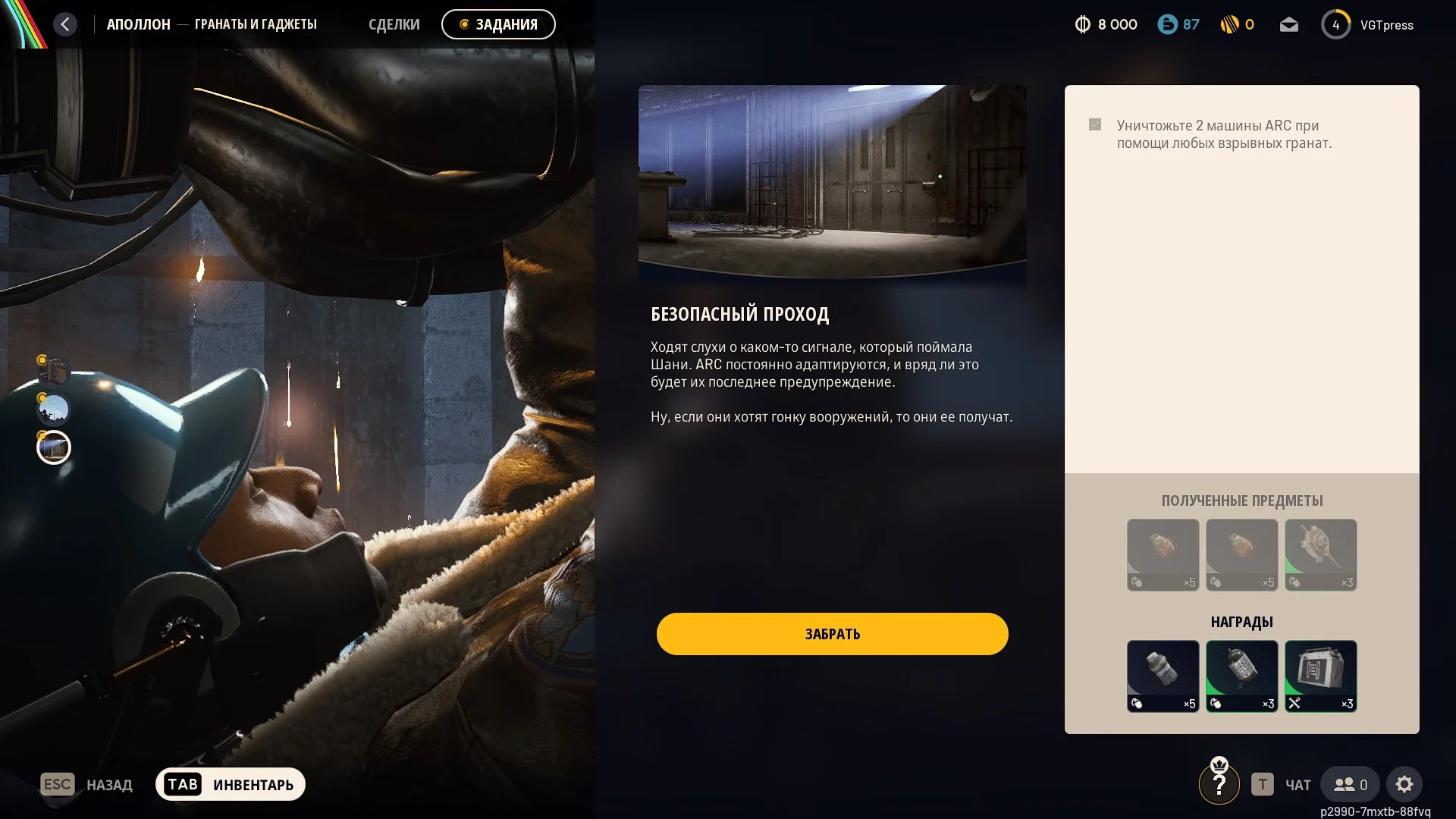 Аполлон выдаст задание, в котором игроку необходимо уничтожить двух любых представителей роботов ARC с помощью любых разрывных гранат.