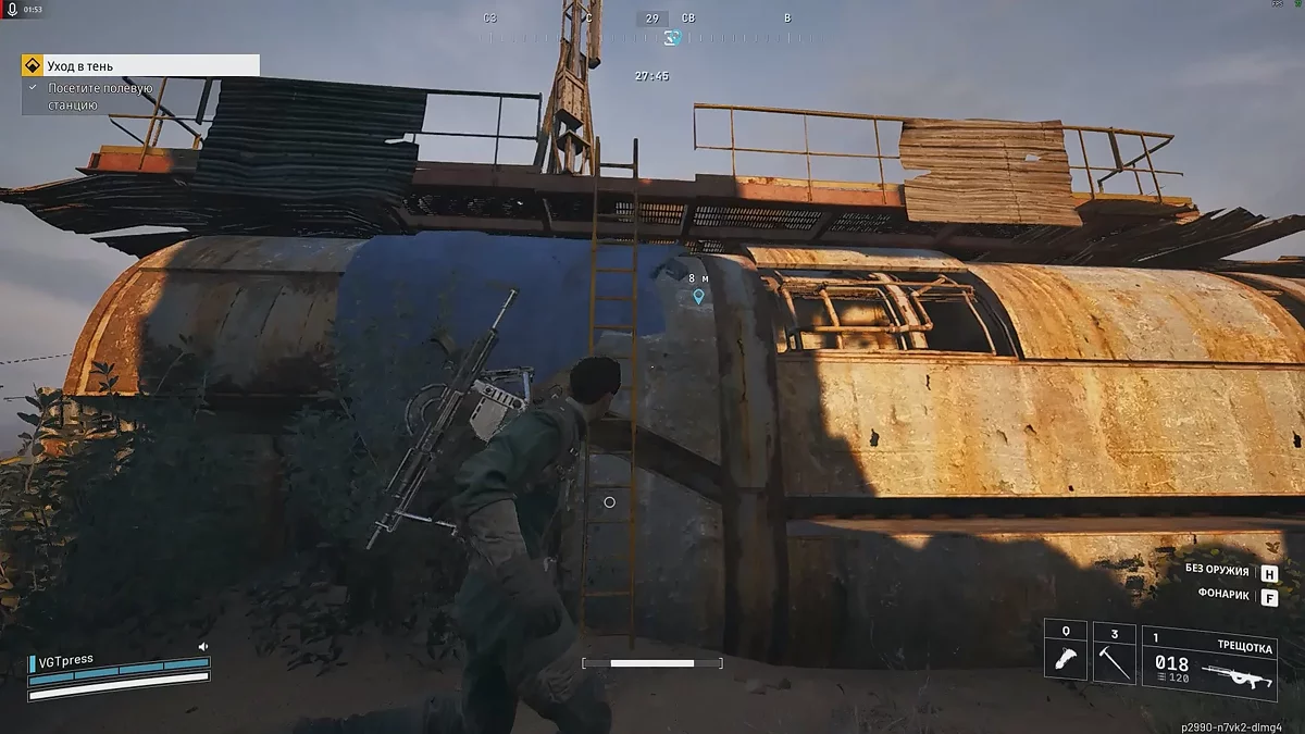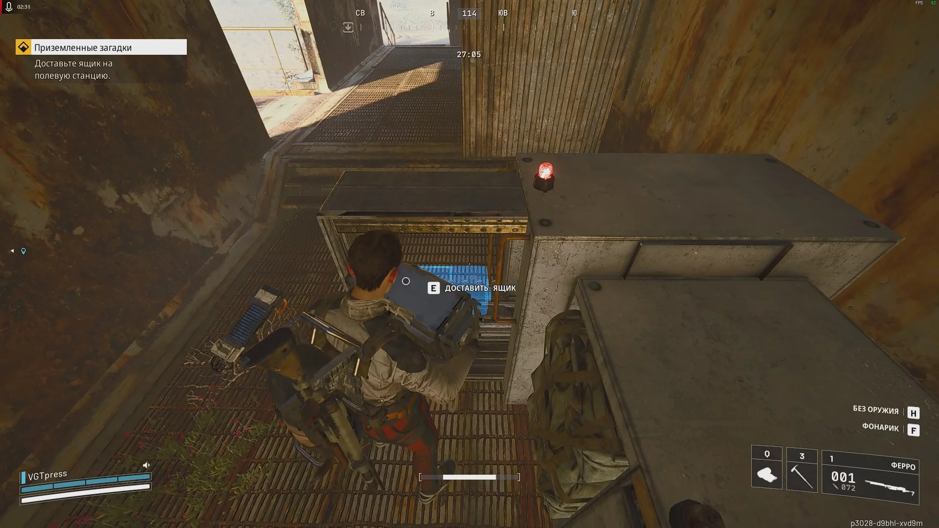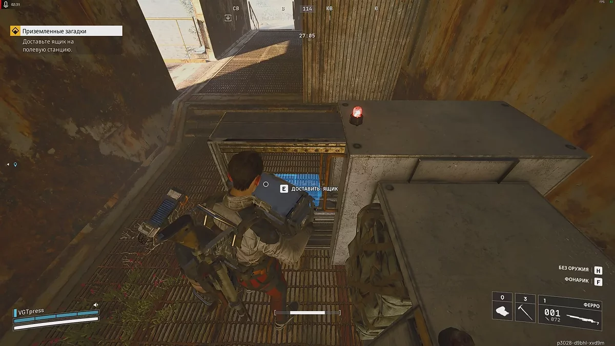 Подобрав предмет, двигайтесь к расположенной неподалеку «Полевой станции», которая находится в непосредственной близости от «Электростанции». Будьте внимательны: персонаж, перенося такой крупный предмет, заметно теряет в скорости передвижения, не может использовать оружие и специальные предметы (гранаты, генератор восстановления щита, бинты). Также он не может совершать кувырок и медленнее восстанавливает выносливость.