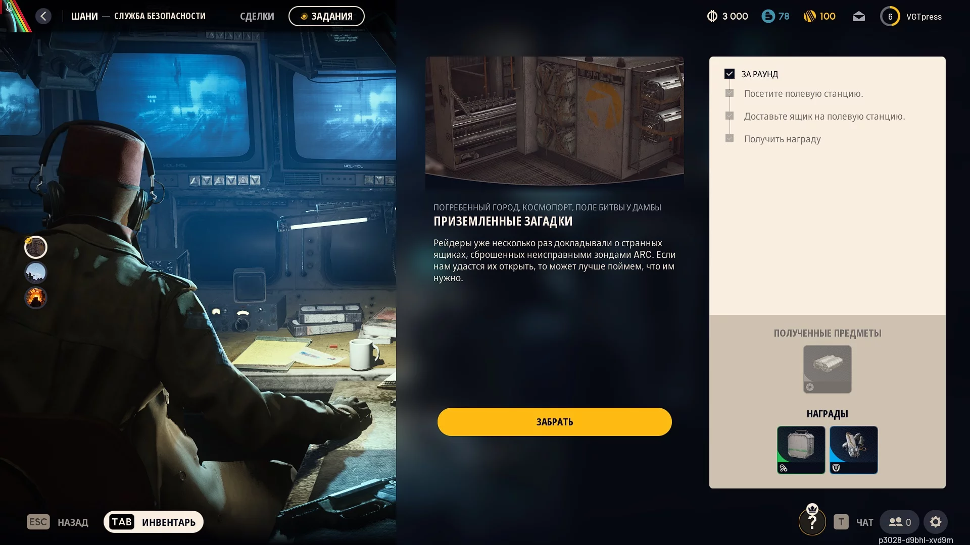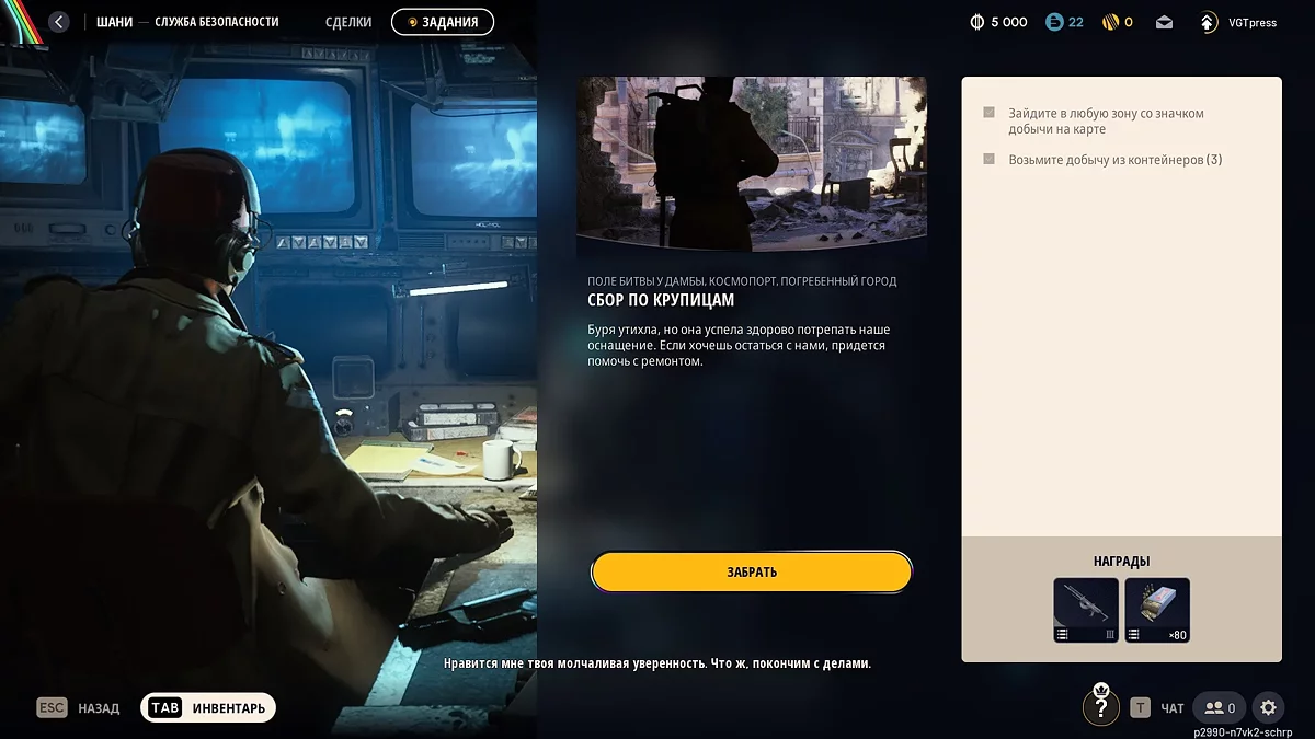 После получения ресурсов направляйтесь к точке эвакуации и сдайте задание, получив следующую награду: