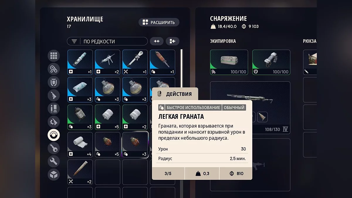 Перед выходом в рейд рекомендуется экипировать оружие, взять к нему подходящие патроны, несколько бинтов, устройство перезарядки щита, а также гранаты — по желанию.