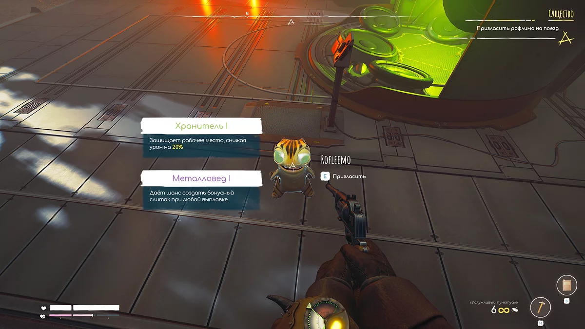 Помимо своего милого личика, Рофлимо могут помогать вам с производством на поезде. Каждое существо может иметь несколько особых перков: от ускоренной работы некоторых станций, до увеличенной награды за крафт предметов. Активировать способности Рофлимо можно с помощью специальных грибов.