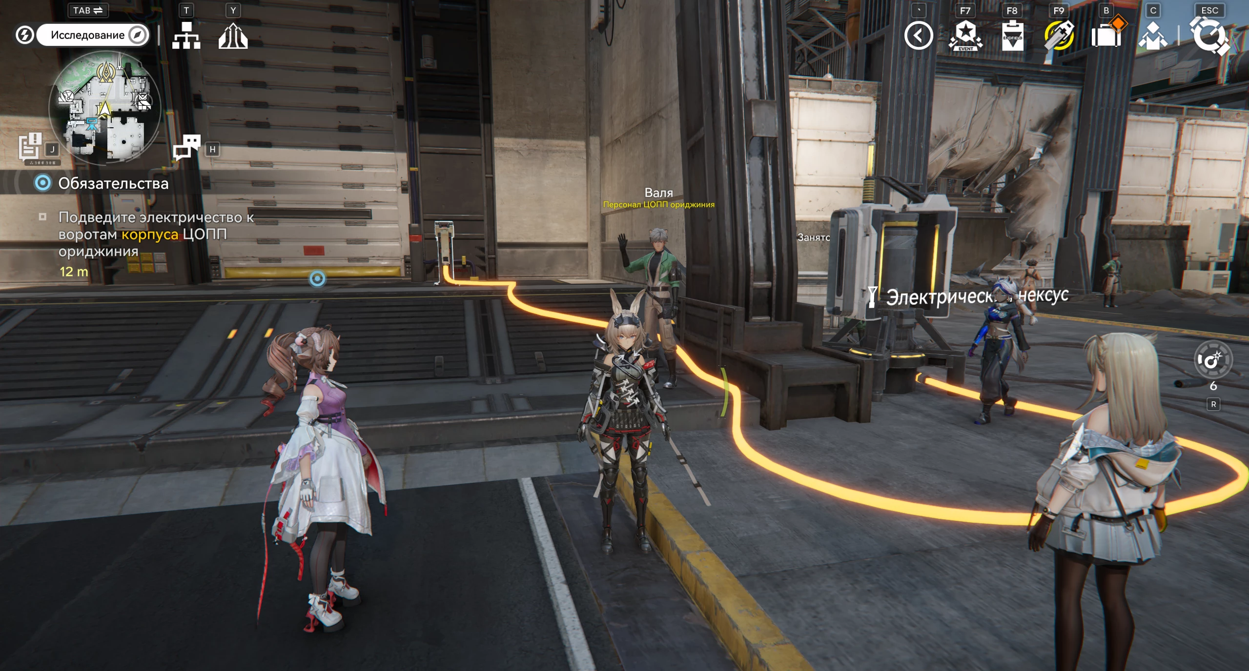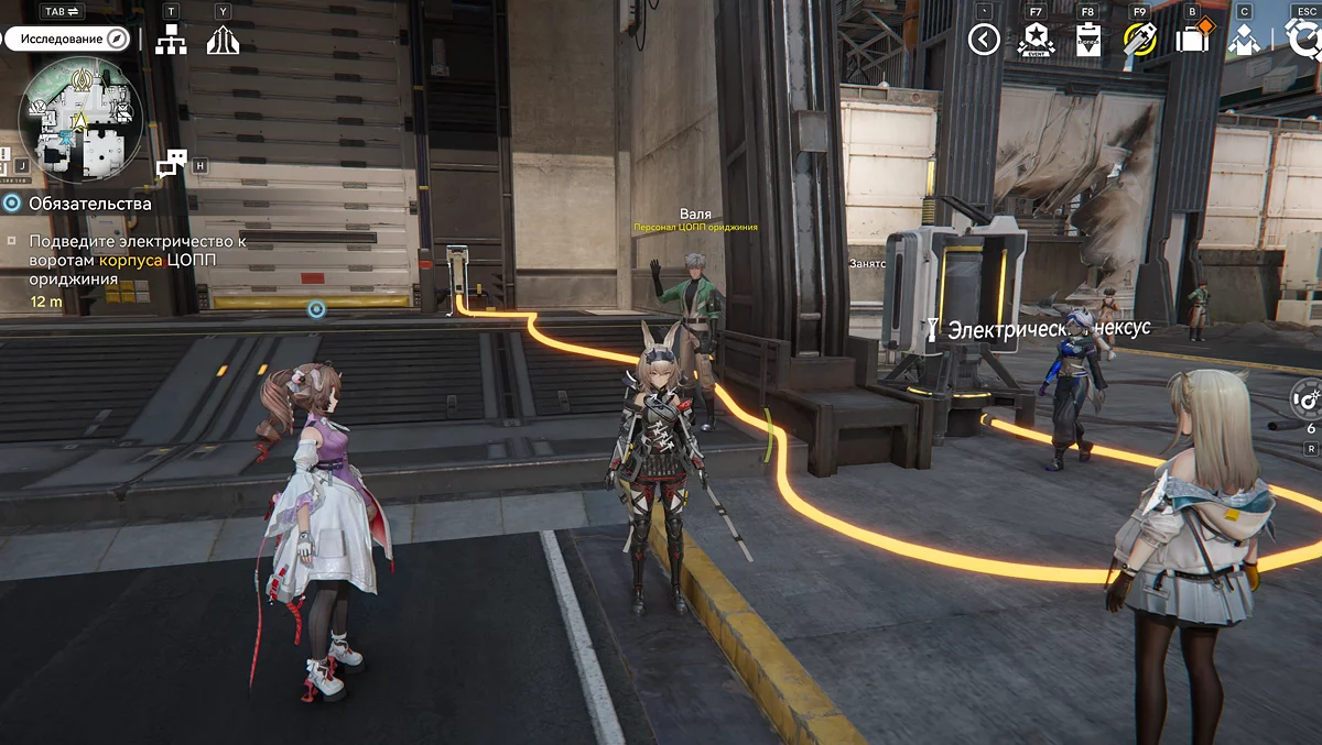 Валя попросит нашу команду помочь открыть ворота в основной корпус. Соглашаемся подсобить и проводим электричество в ближайший нексус, чтобы активировать панель управления воротами.