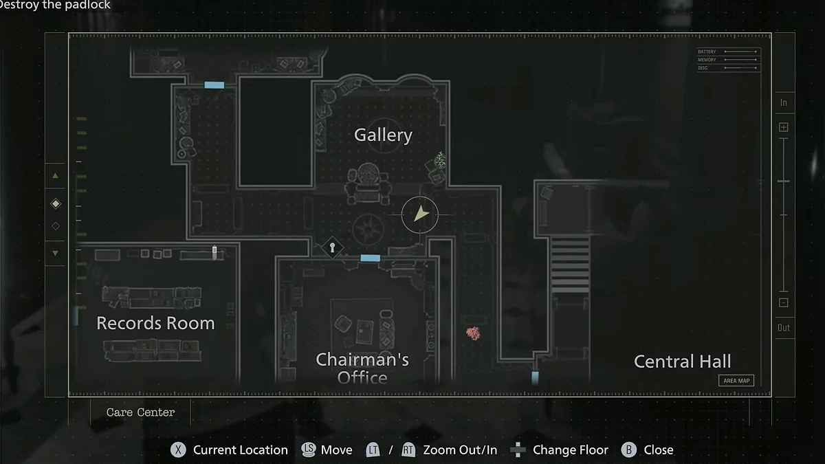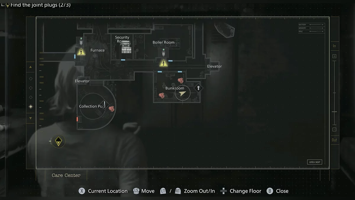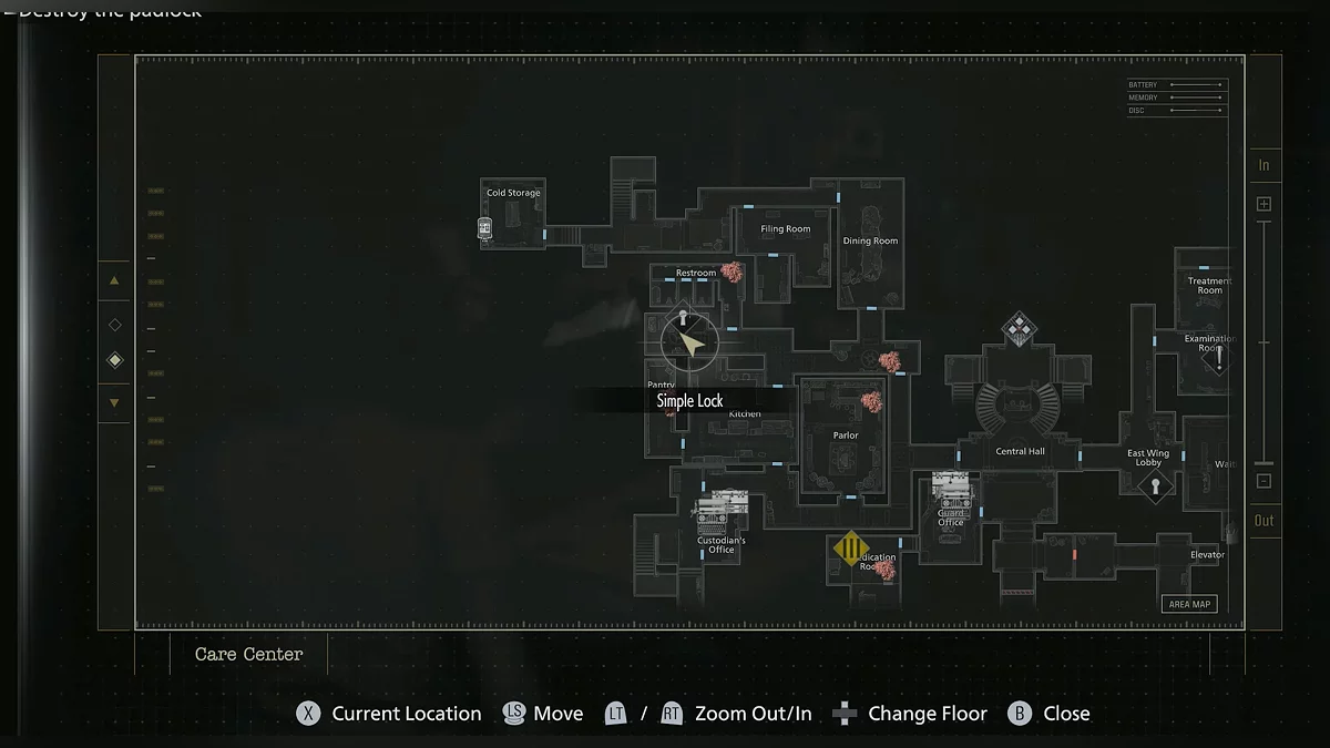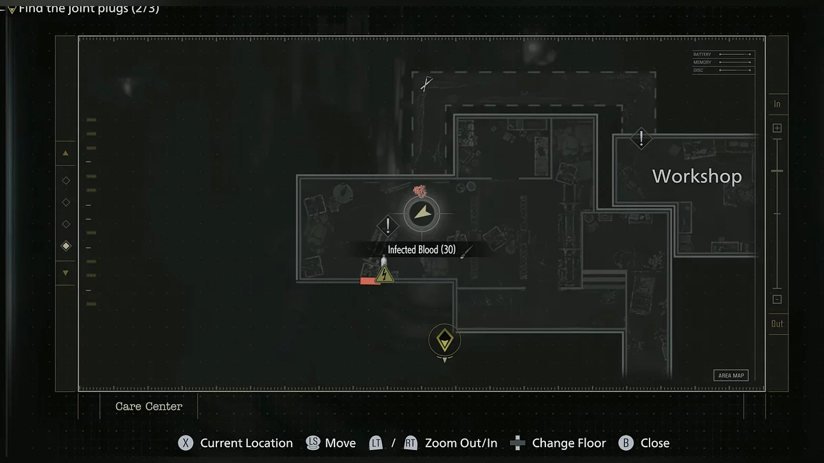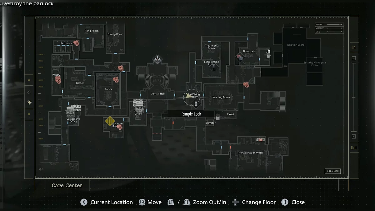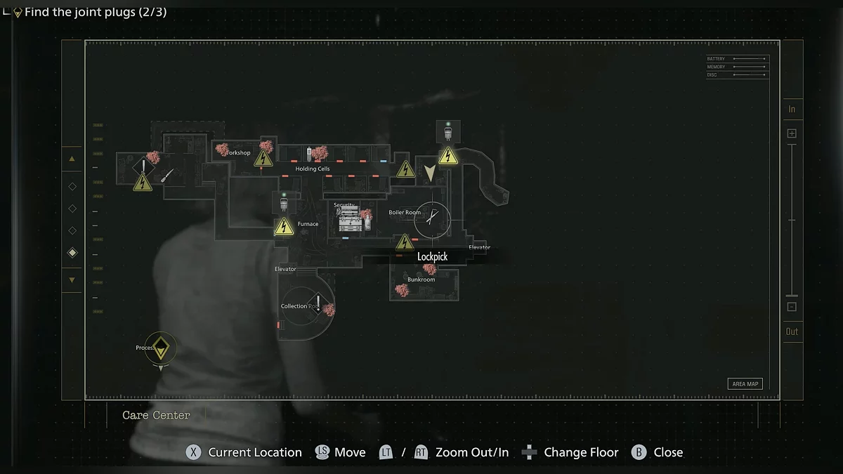 Во всей локации находятся три закрытых ящика и два шкафчика, которые можно открыть полученными отмычками. В каждом из них хранится редкий металл. Этот материал необходим для изготовления патронов для револьвера «Реквием» во время игры за Грейс. Не волнуйтесь, если не смогли забрать ящики на поверхности заранее. Вы вернетесь на верхние этажи и сможете открыть их снова, прежде чем продолжить прохождение кампании.