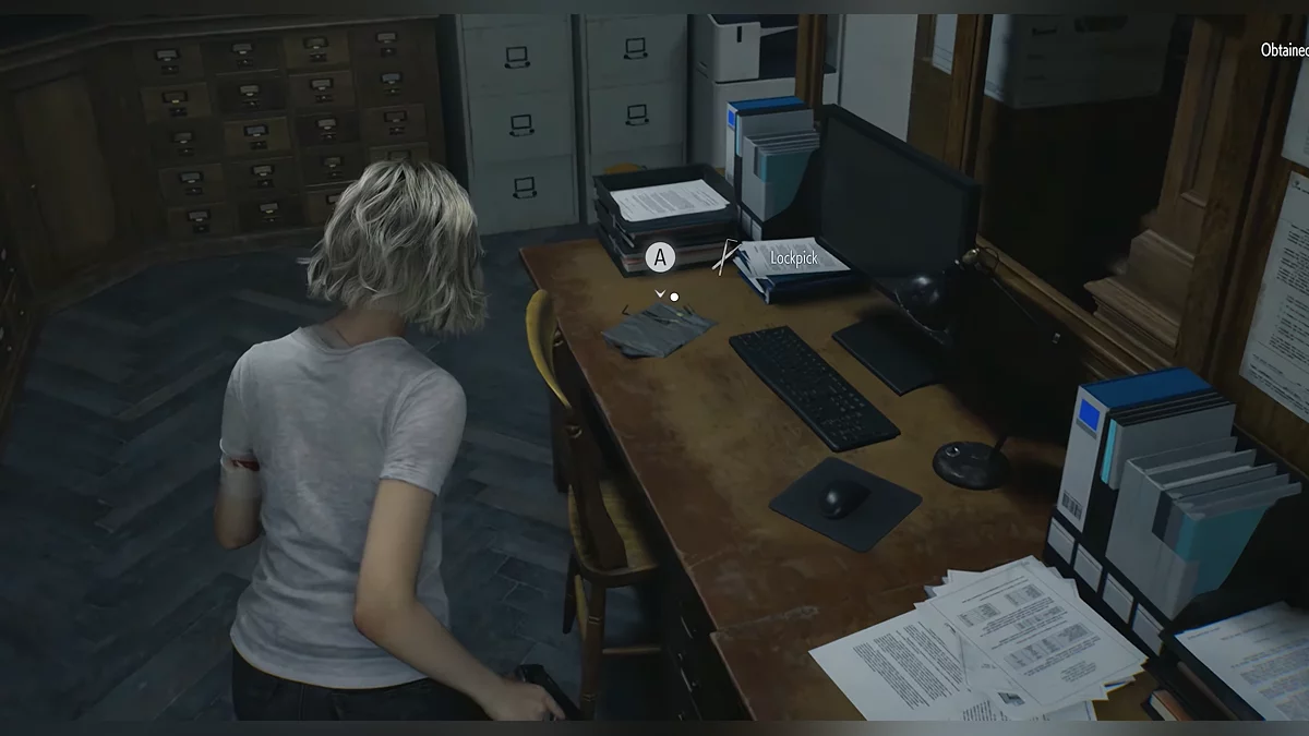 Проходя сюжет, вы рано или поздно наткнетесь на офис исследователя (Lead Researcher's Office), расположенный в восточном крыле. Найдите небольшую столешницу в левом углу комнаты, на ней будет лежать первая доступная отмычка.