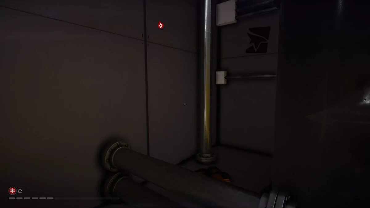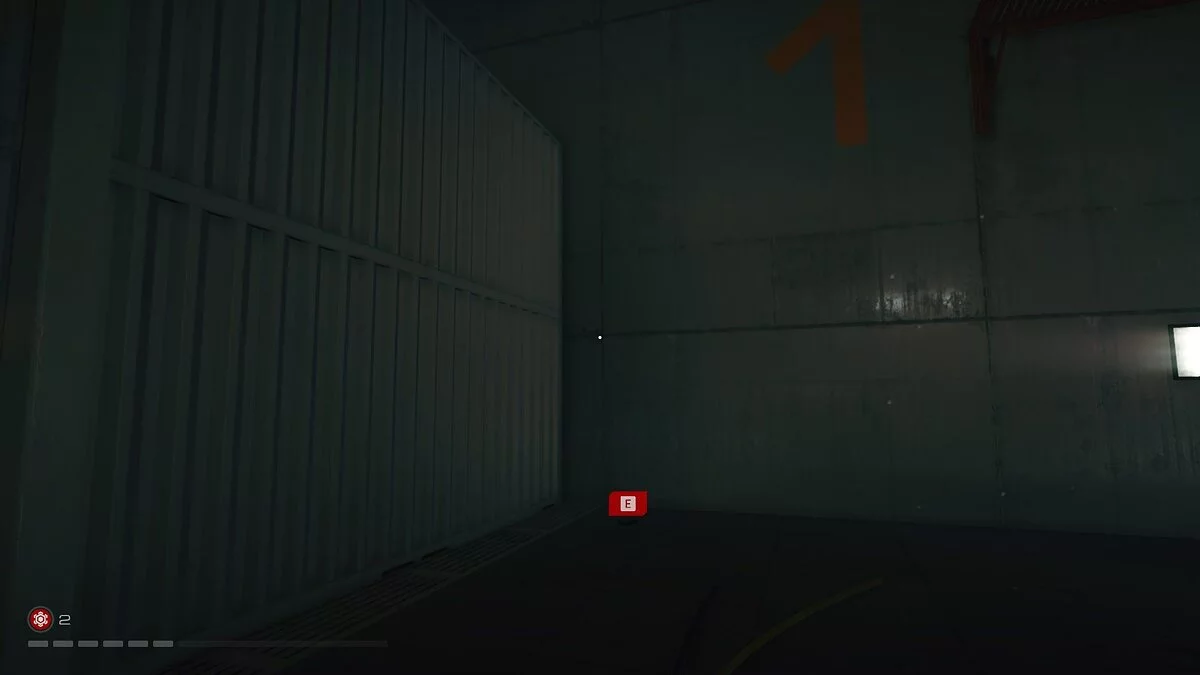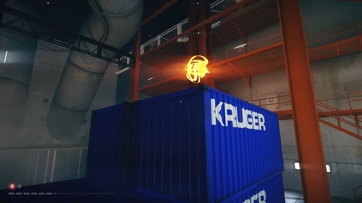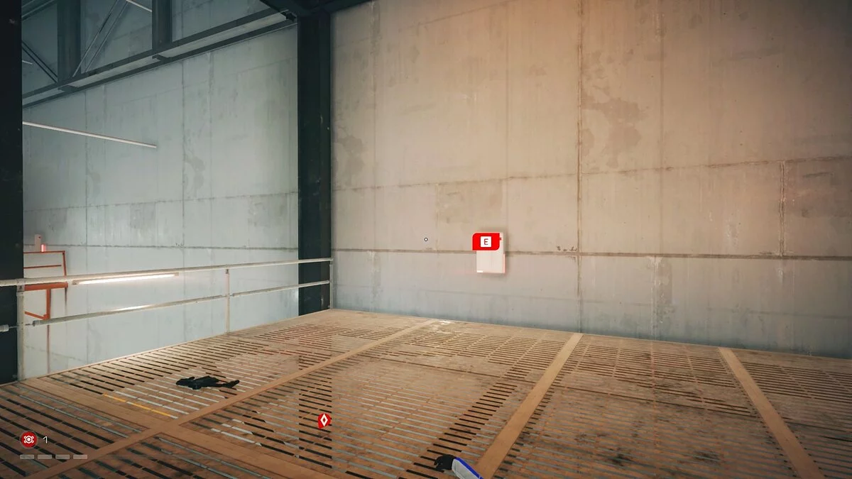 В комнате, где полно синих контейнеров Крюгера, заберитесь на самый верхний помост. Используя крюк-кошку, стяните панели и с помощью бега по стенам доберитесь до другого помоста. Пройдите по нему немного дальше и найдете сумку.